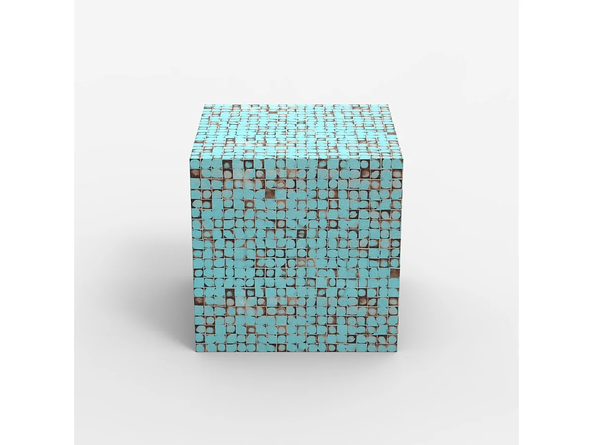 Table basse carrée contemporaine en bois incrusté Manju - Turquoise
