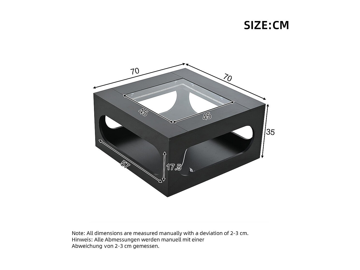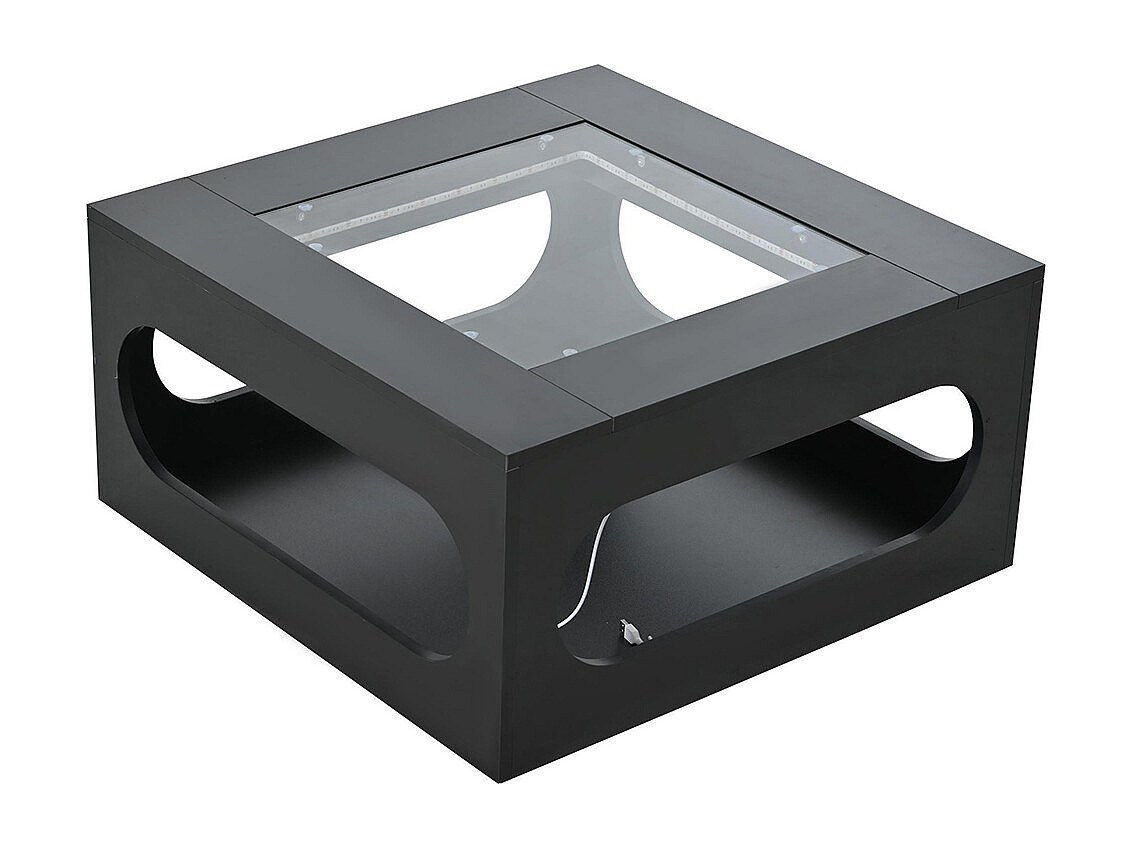 Table basse carrée noire avec éclairage LED, plateau en verre 70x70x35cm