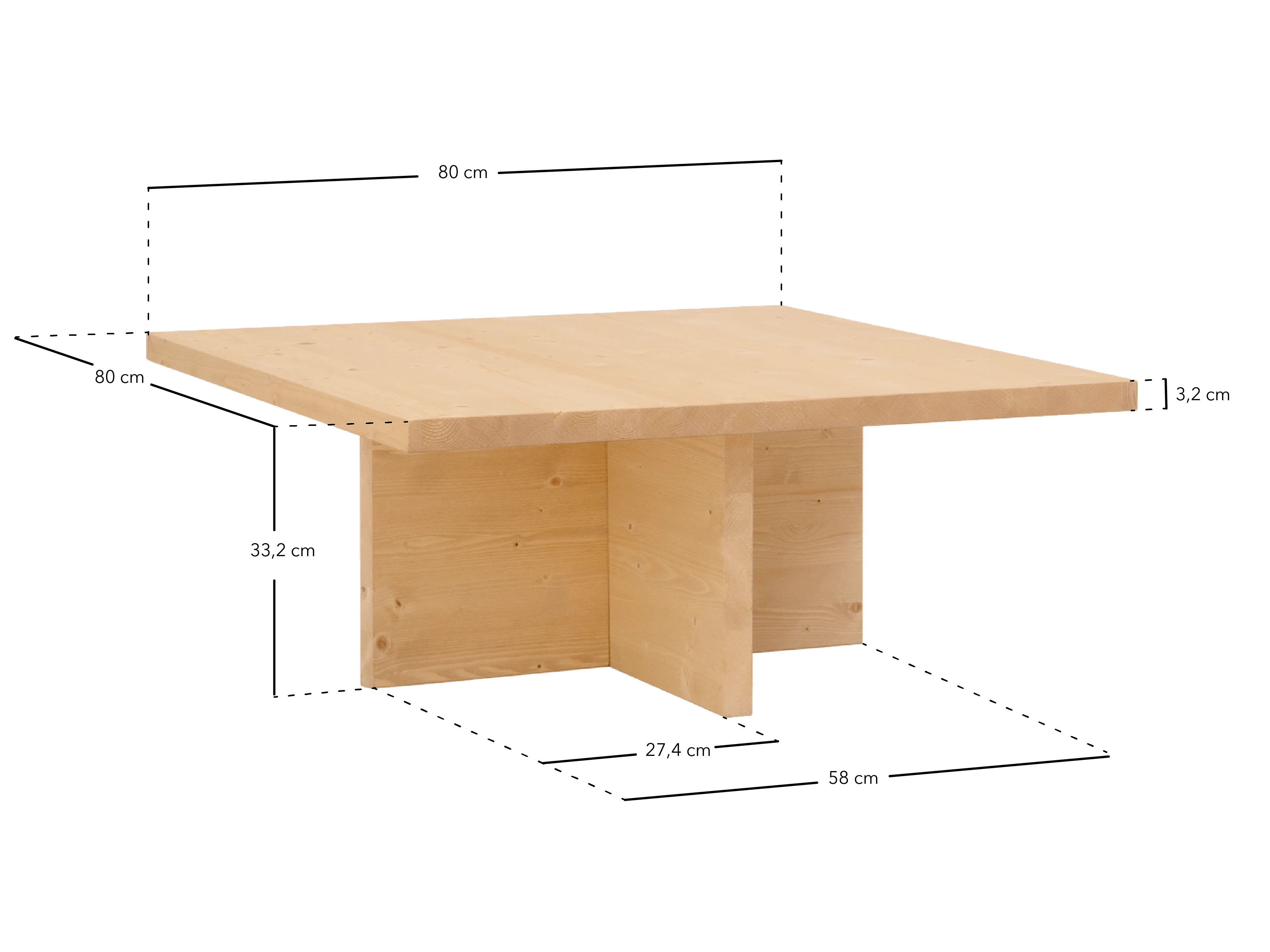 Table basse carrée en bois massif ton marron de 80x33,22cm - TENA - DECOWOOD
