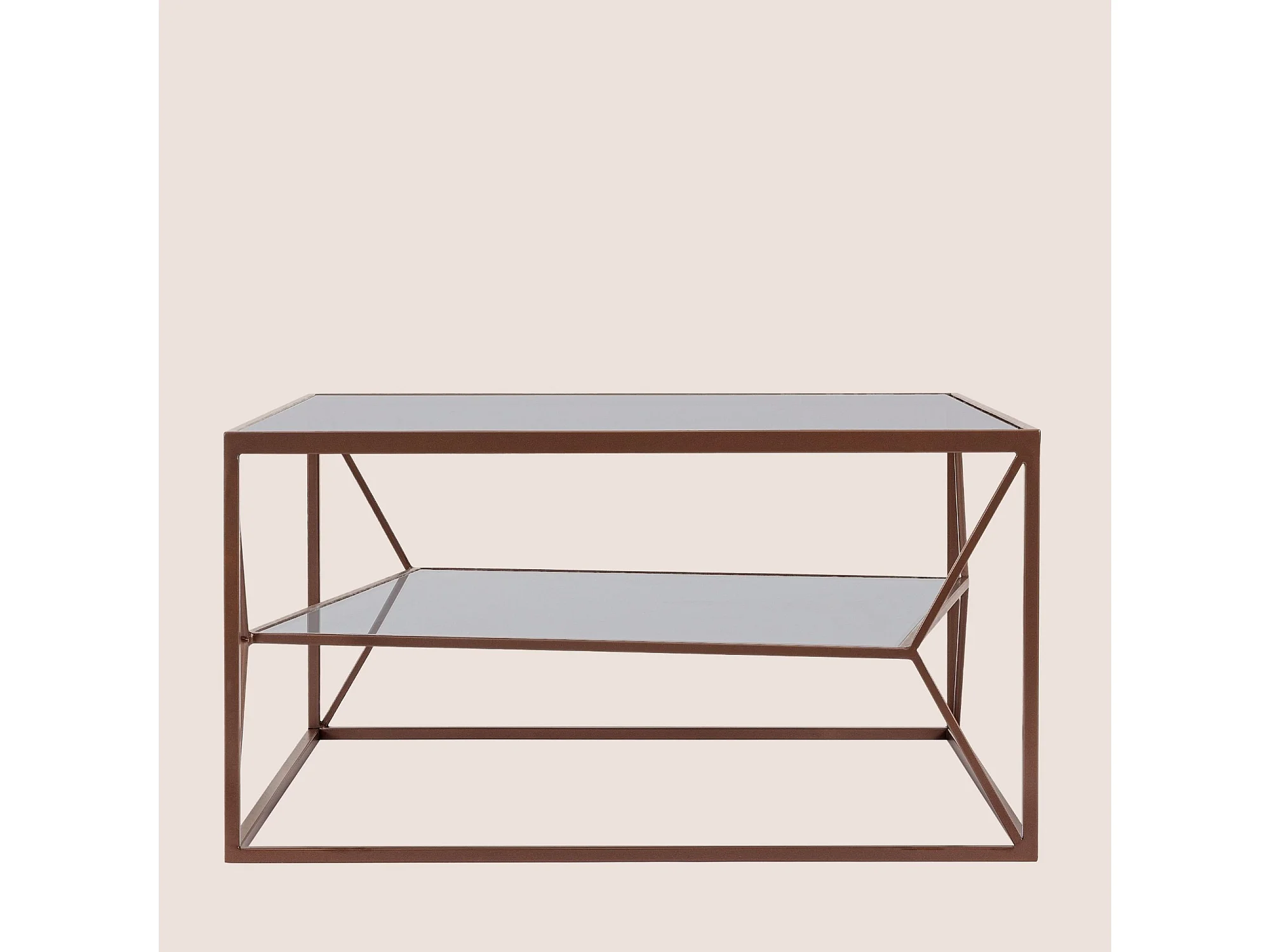 Table basse carrée en métal marron double plateau en verre L70 - THEIA