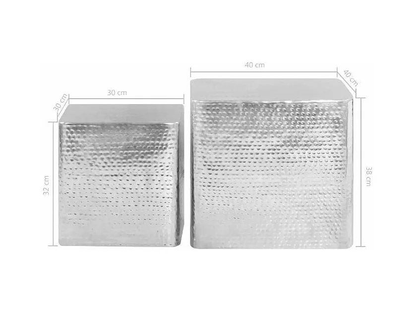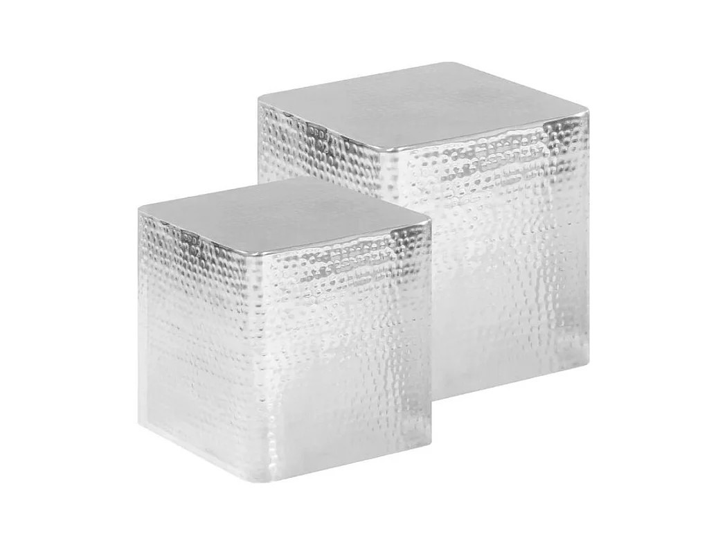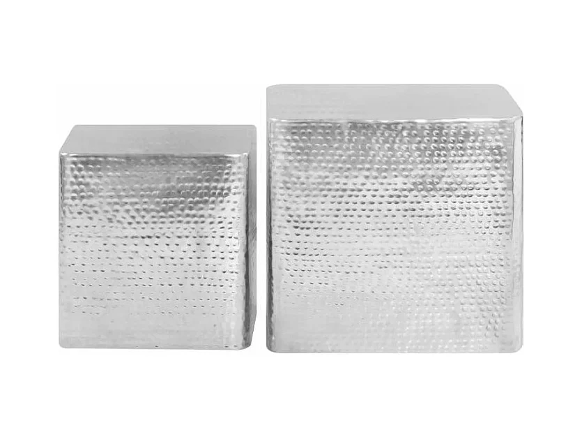 Table basse carrée métal martelé argenté Sym - Lot de 2