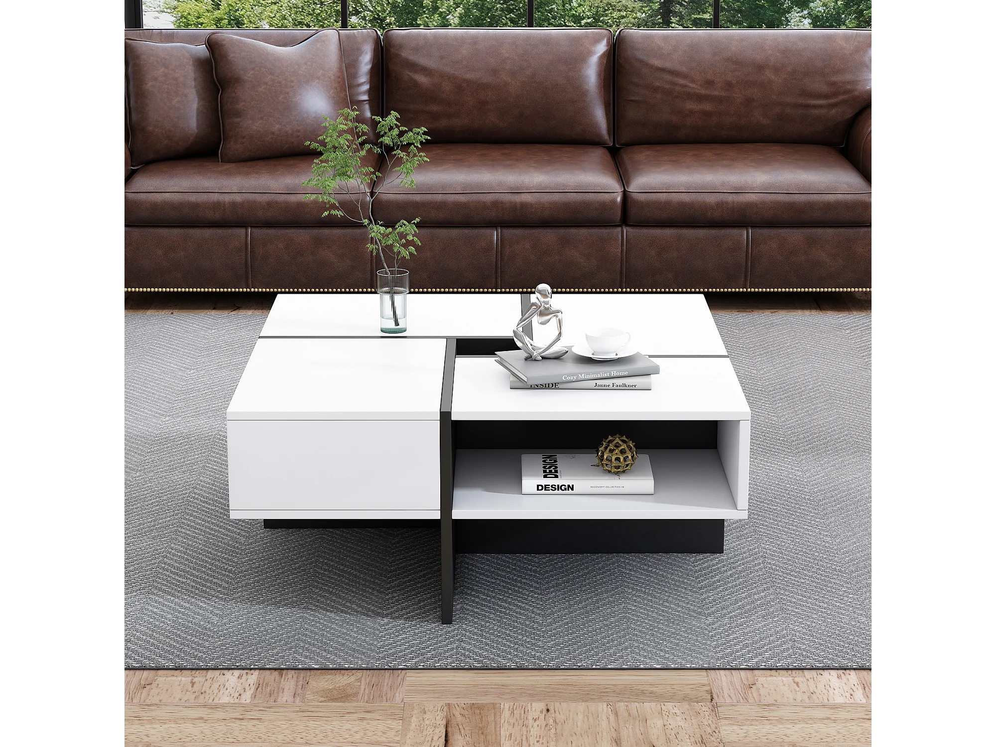 Table basse carrée moderne 70x70x35cm – Design noir et blanc, 5 compartiments ouverts, espace de rangement central 10x10cm, capacité de charge 30kg
