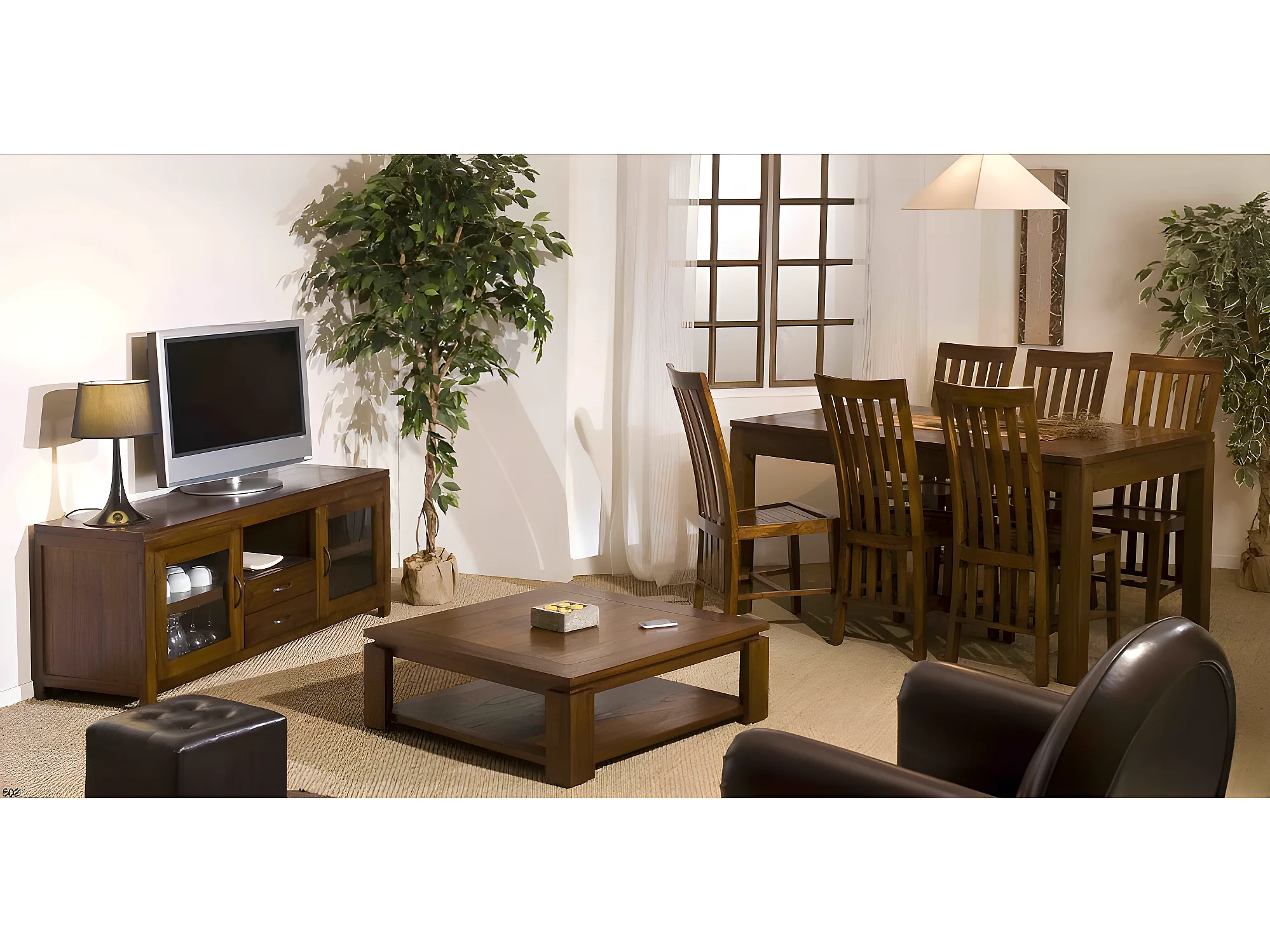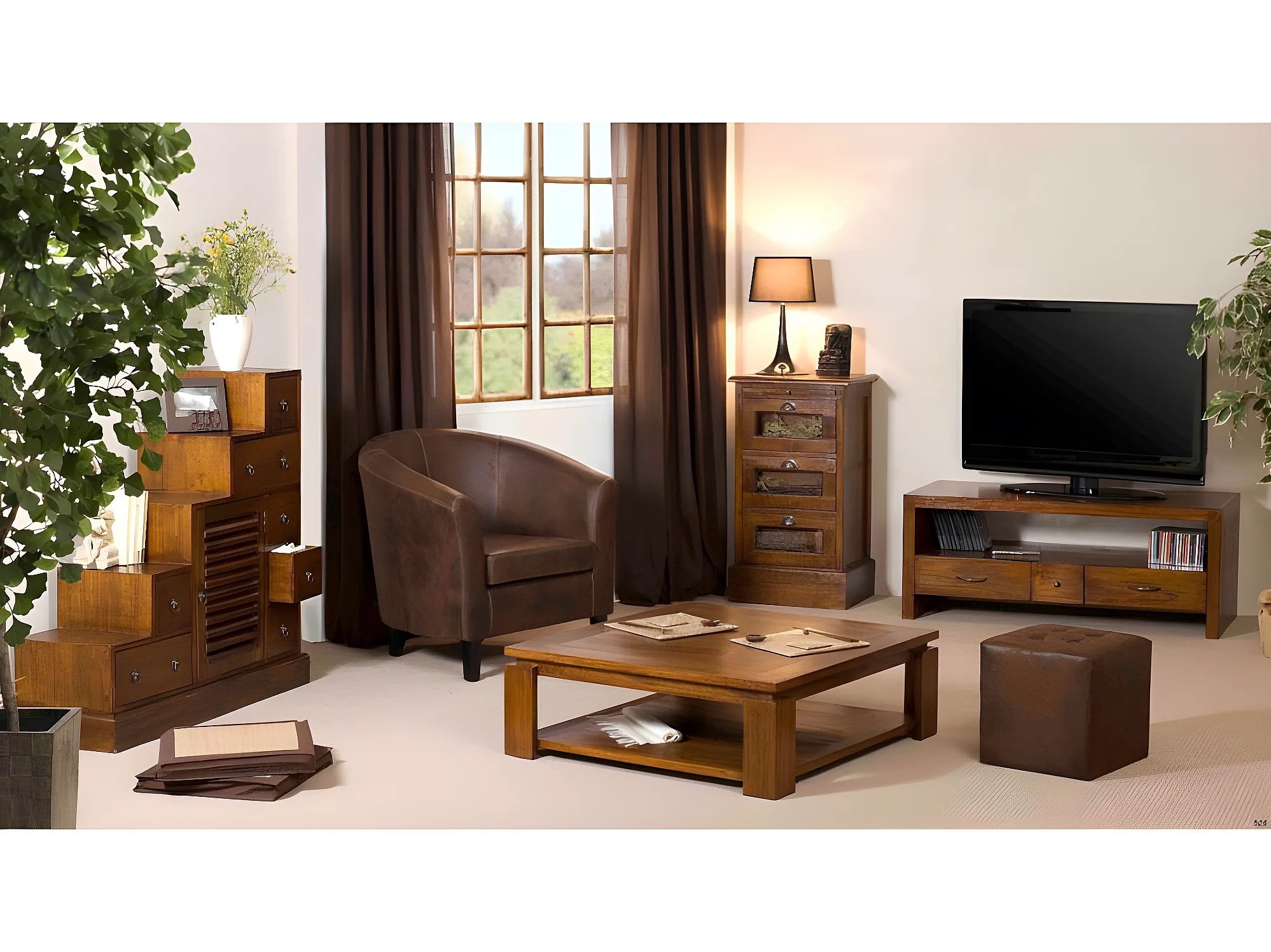 LAUREN - Table basse carrée marron sous plateau 90x90cm bois Mindi