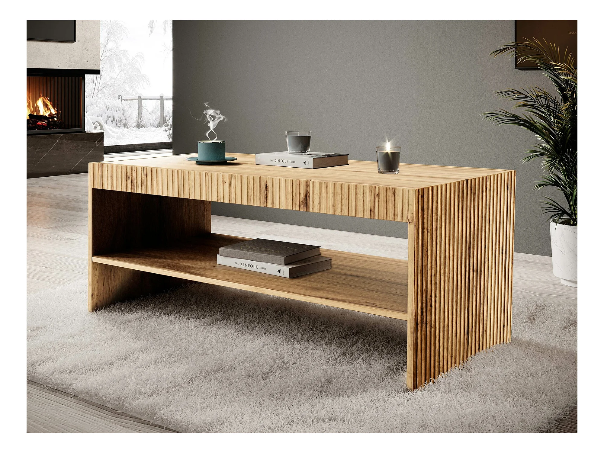 Table basse Remeta 101, Chêne wotan, 51x57x120cm, Stratifié, Angulaire