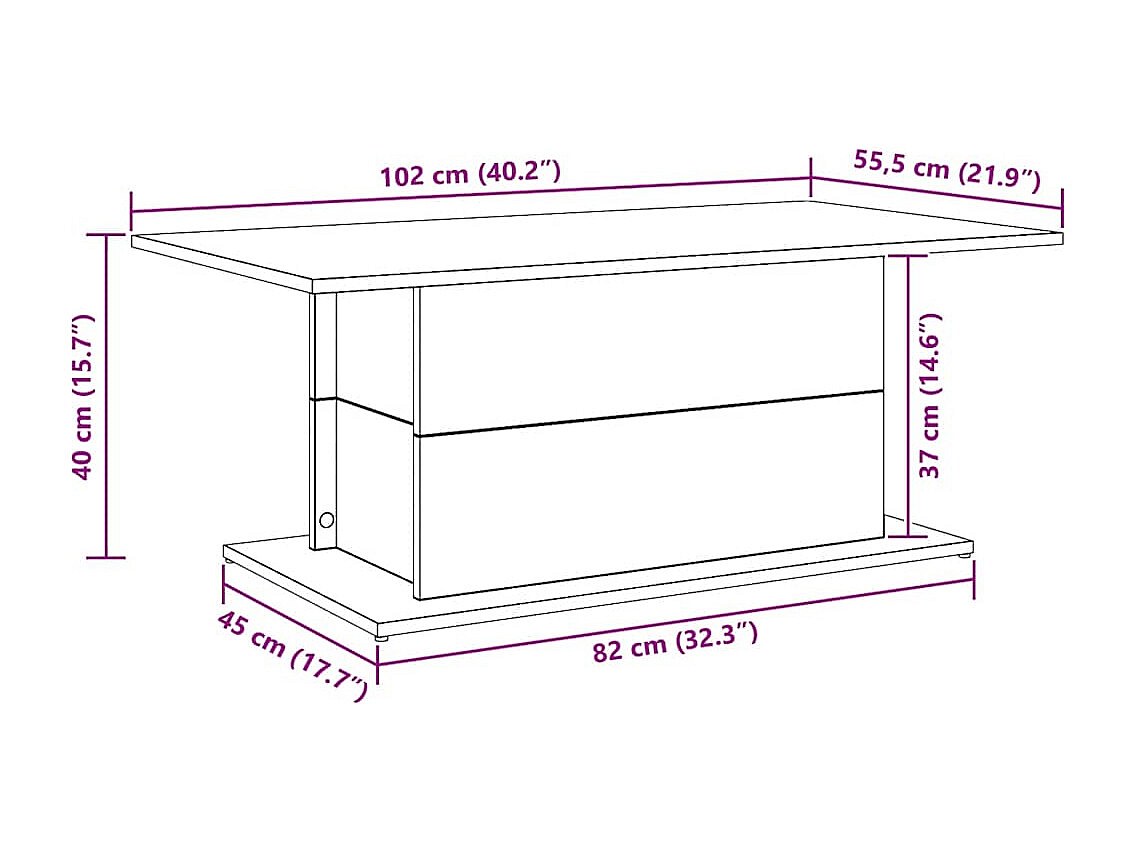 Table basse chêne sonoma 102x50x40 cm bois d'ingénierie