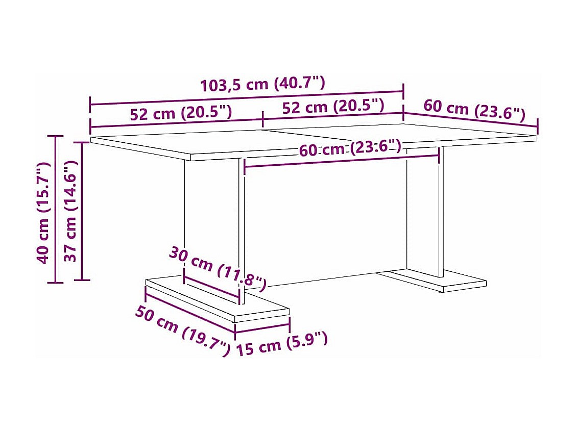 Table basse Bois ancien 103,5 x 60 x 40 cm Bois d'ingénierie