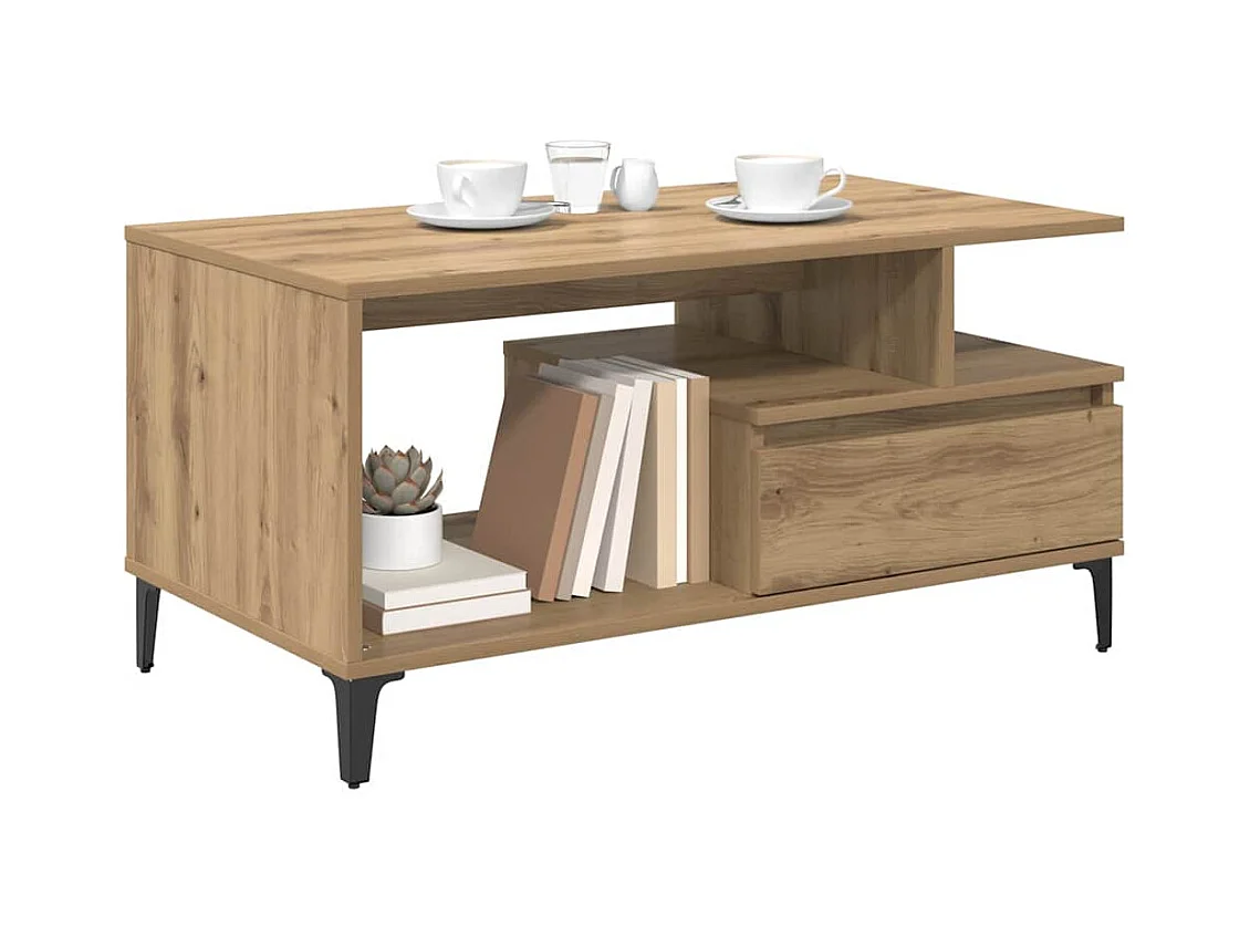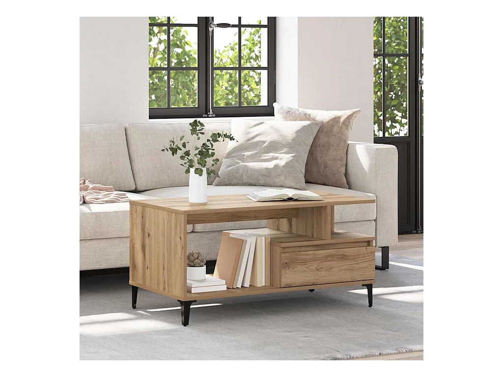 Table basse chêne artisanal 90 x 49 x 45 cm Bois d'ingénierie