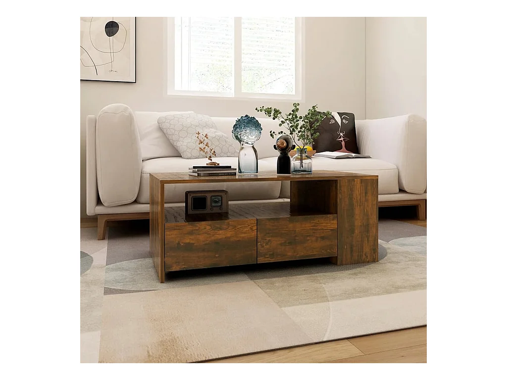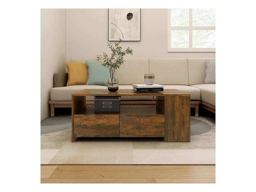 Table basse chêne fumé 102x55x43 cm bois d'ingénierie