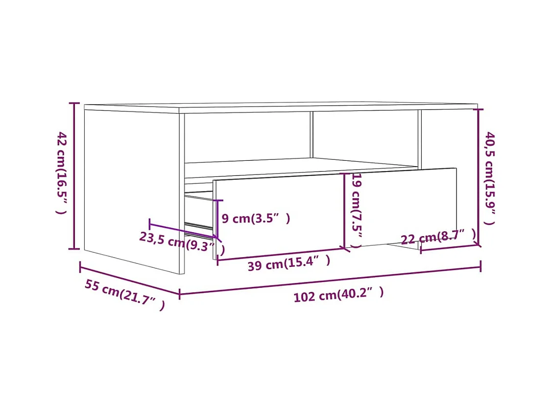 Table basse chêne sonoma 102x55x42 cm bois d'ingénierie