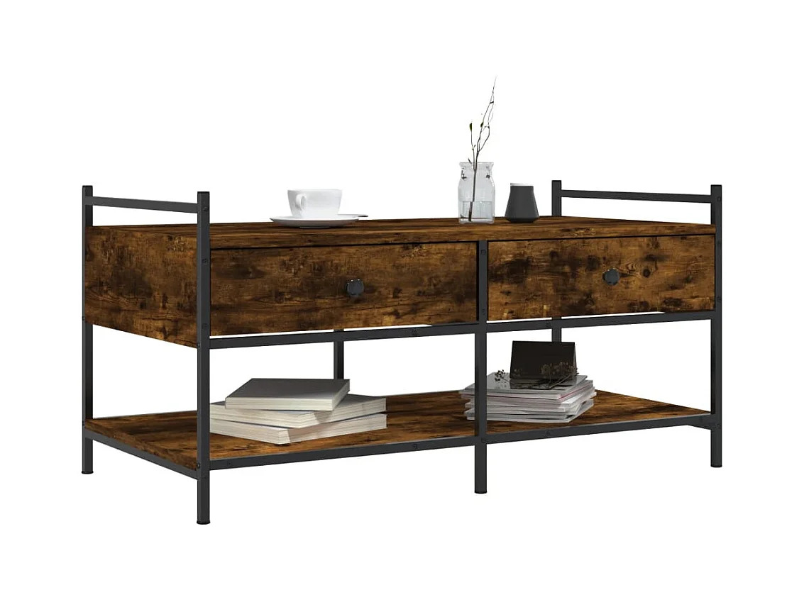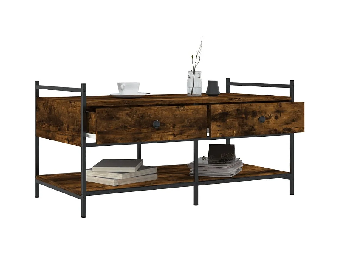 Table basse chêne fumé 100x50x50 bois d'ingénierie et métal