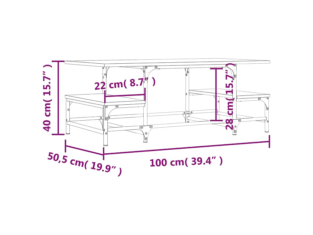 Table basse chêne marron 100x50,5x40 cm bois d'ingénierie