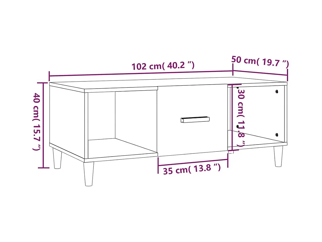 Table basse Chêne sonoma 102x50x40 cm Bois d'ingénierie