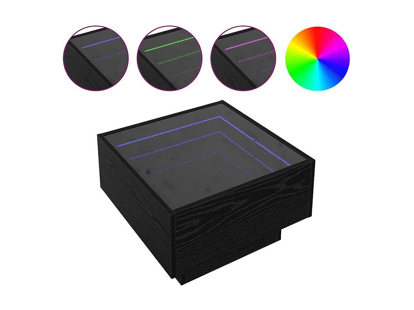 Table basse avec LED infini noir 50x50x30 cm
