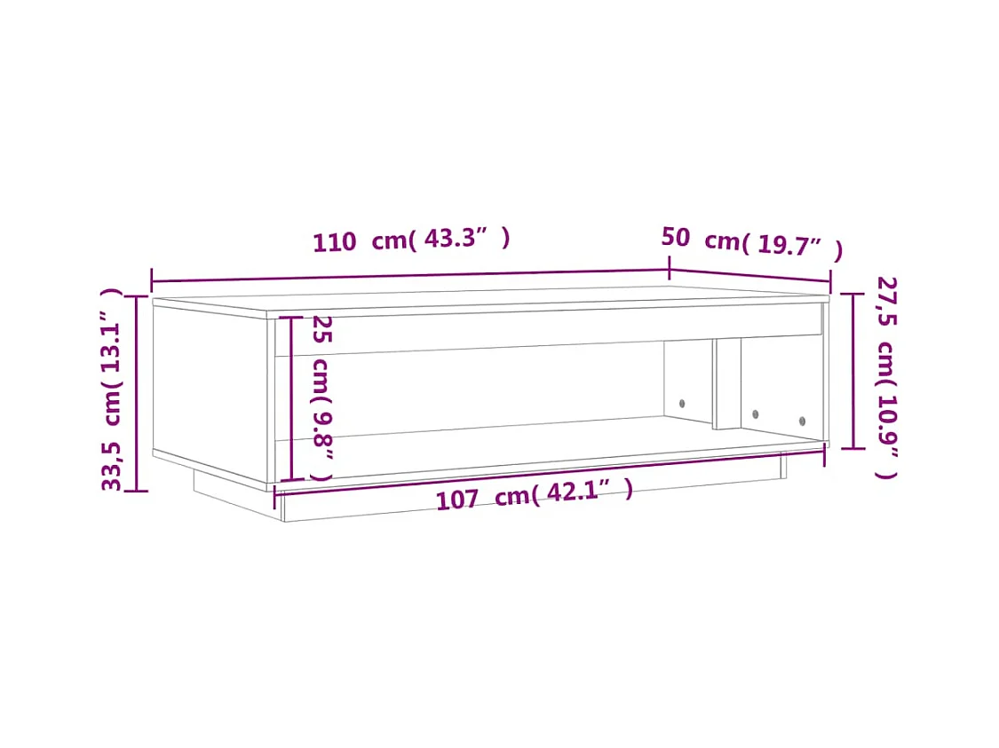 Table basse cire marron 110x50x33,5 cm bois massif de pin