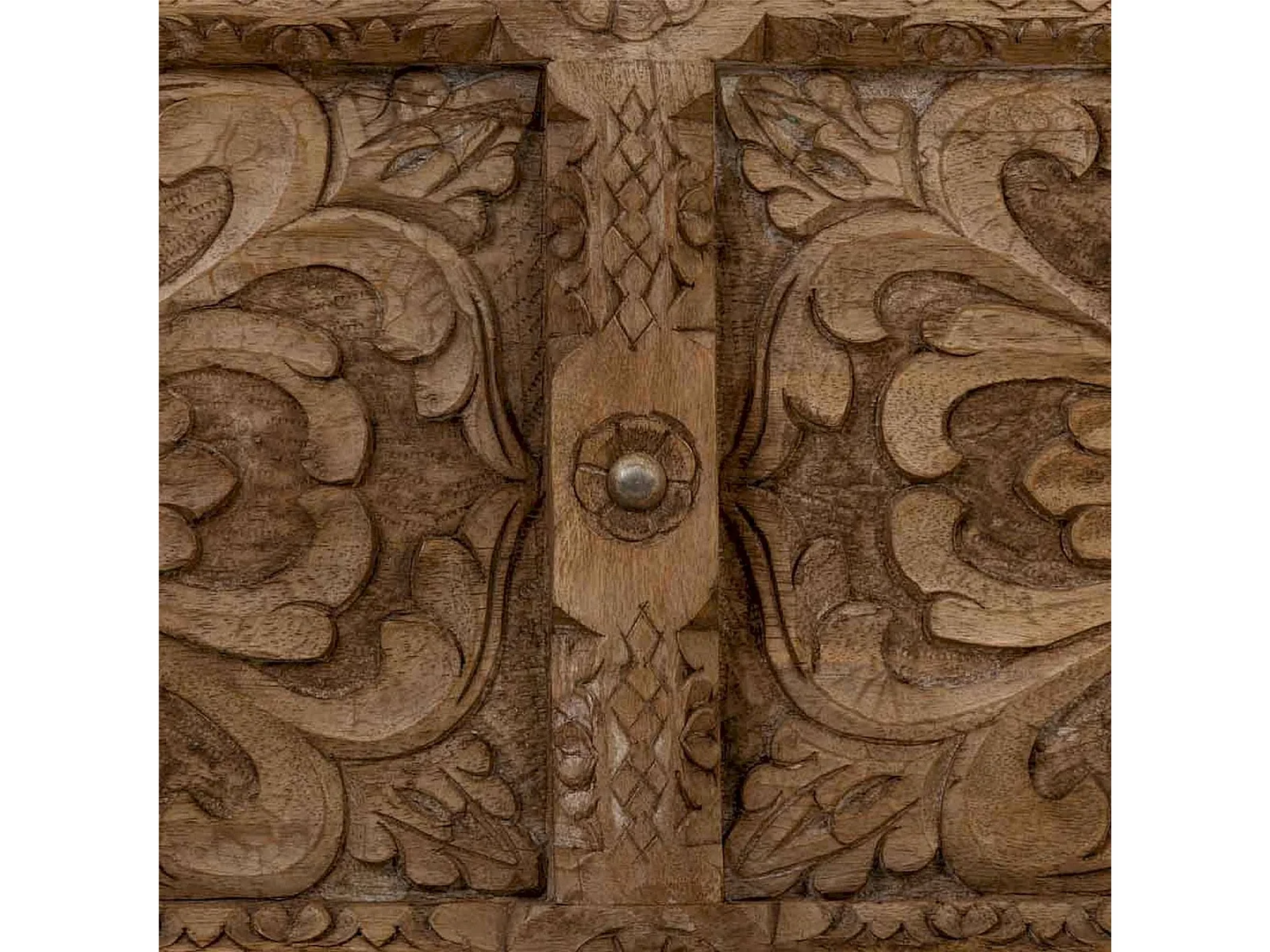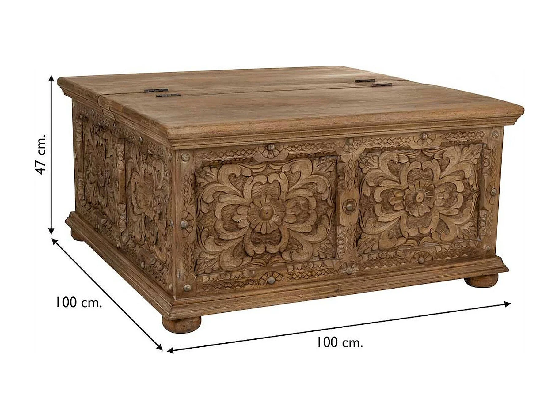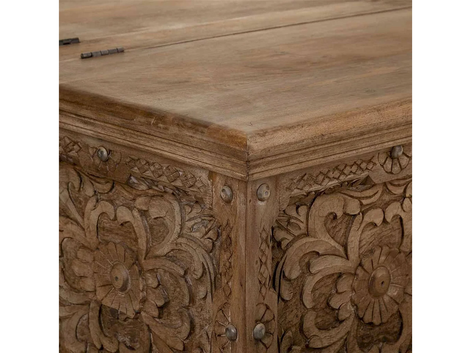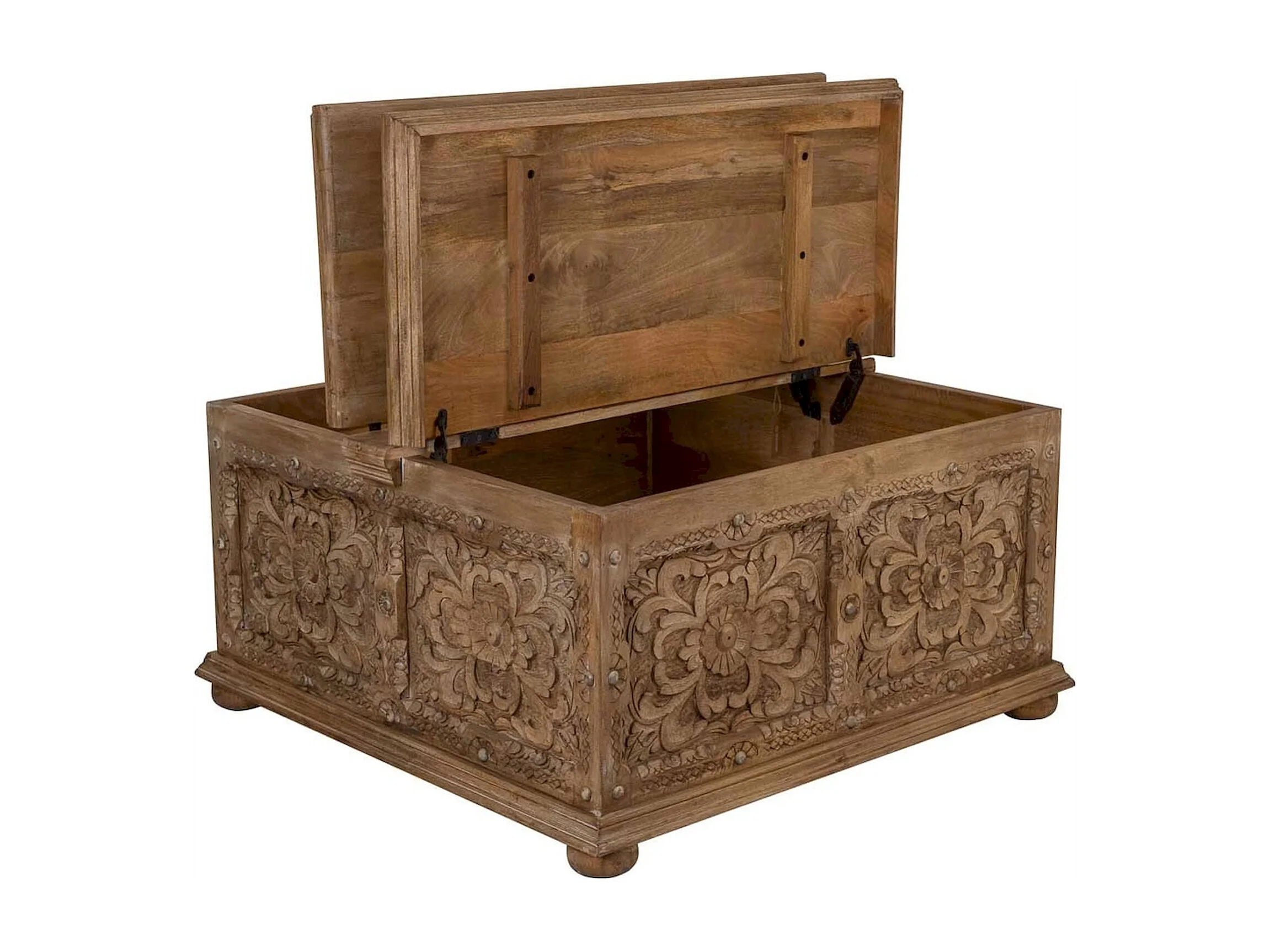 table basse coffre artisanal bois sculpté brun