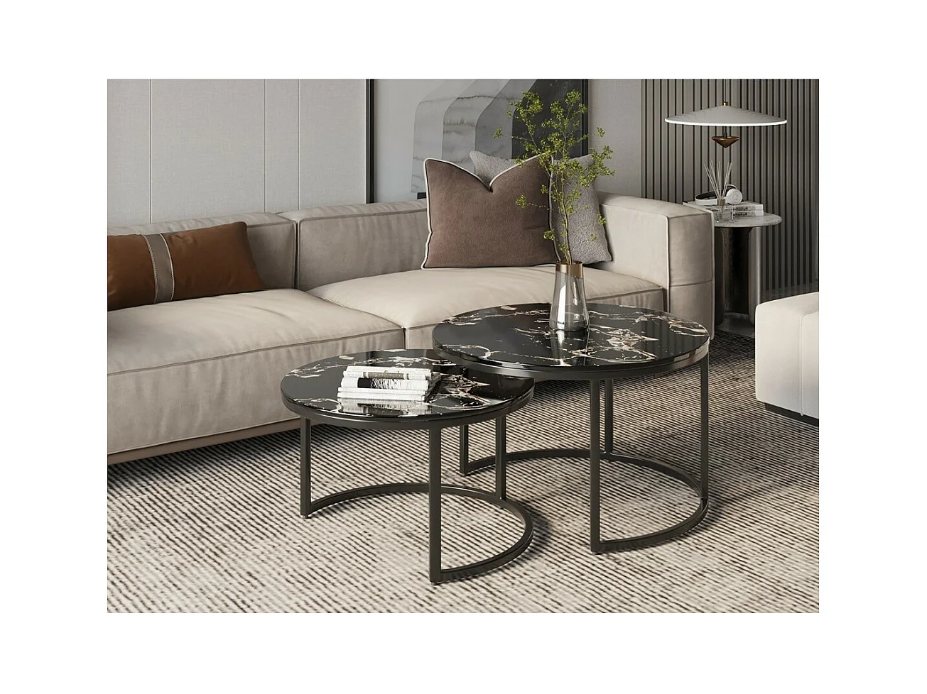 Table basse collection NAZARI. Meuble type CONTEMPORAIN. Pierre aspect marbre noir.