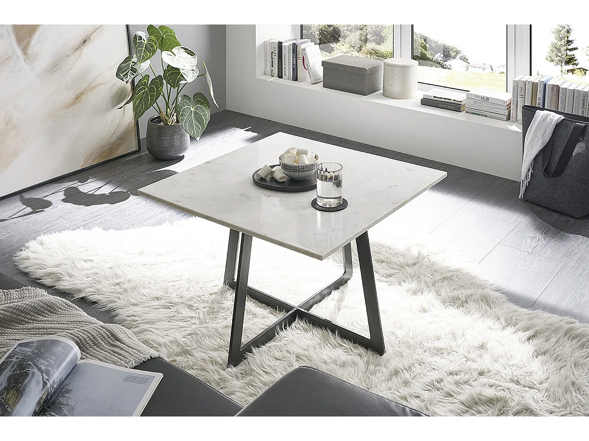Table basse coloris blanc/ pieds en métal laqué - Longueur 65 x Hauteur 44 x Profondeur 55 cm