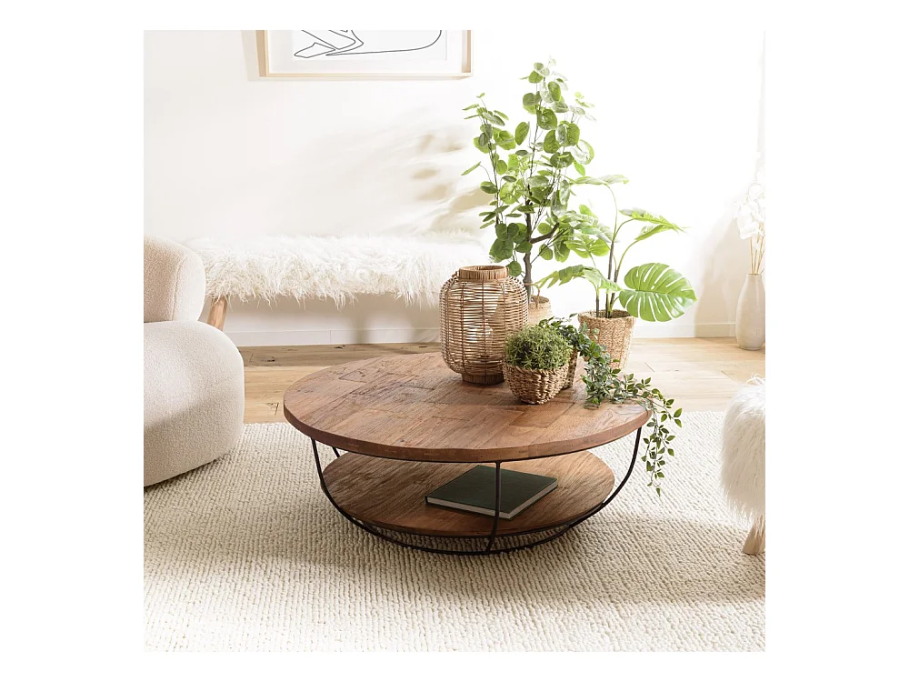 SIXTINE - Table basse plateau 100x100cm bois teck recyclé métal noir