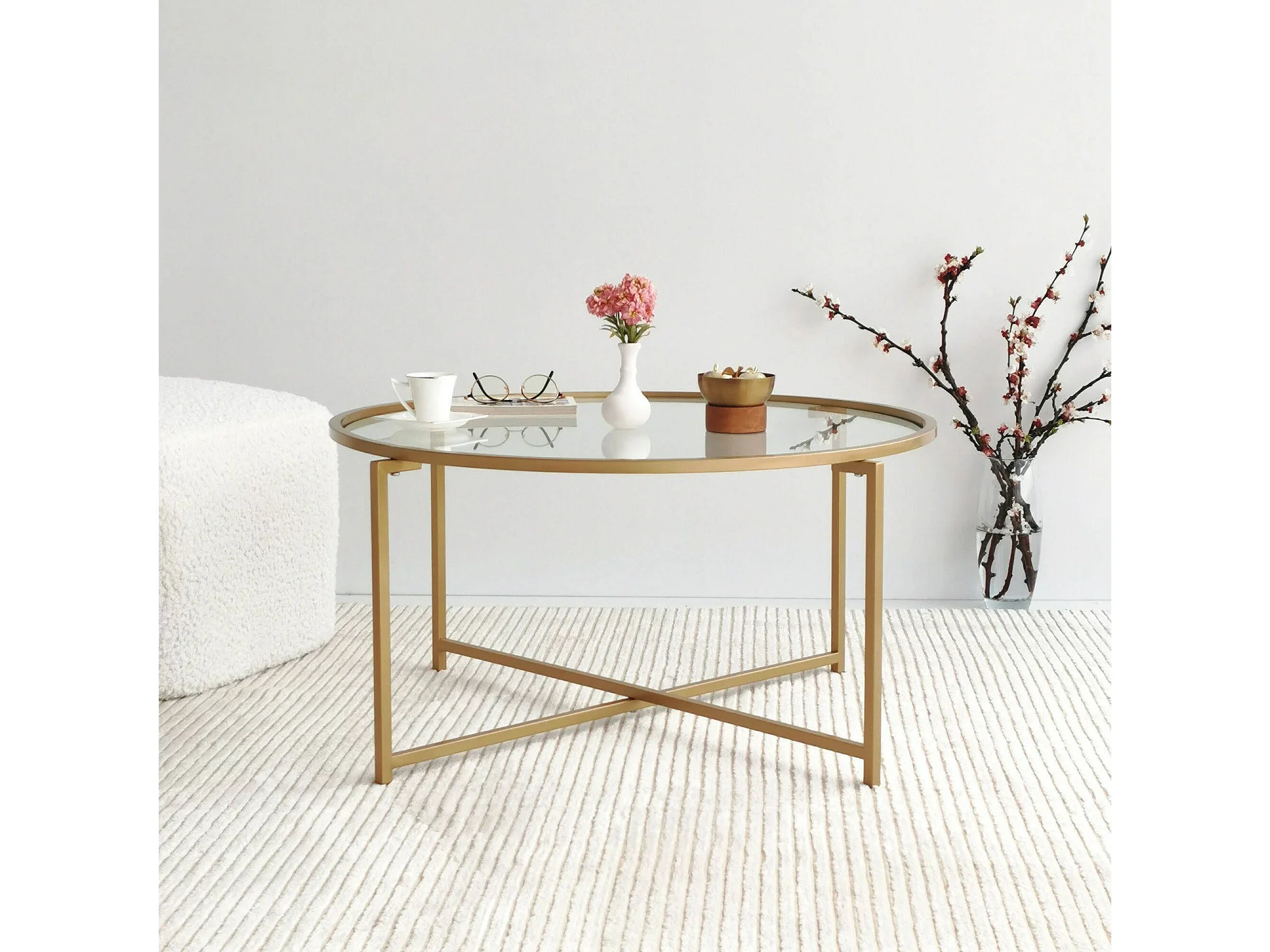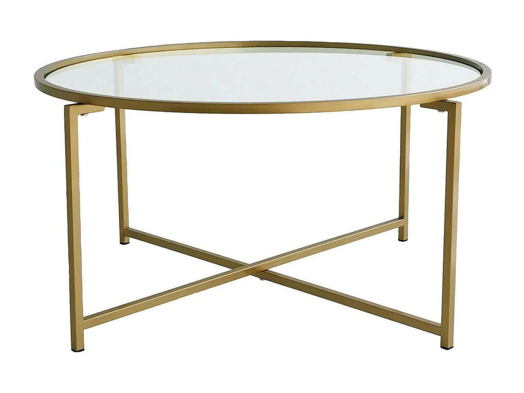 Table basse Cursa, Table basse, Porte-revues pour canapé, Etagère de salon, 83x83h40 cm, Or
