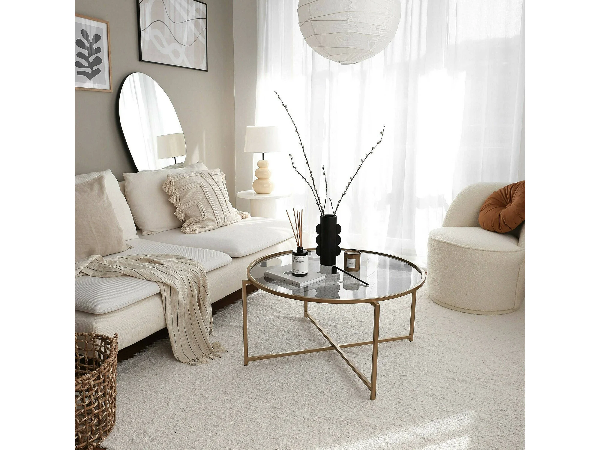 Table basse Cursa, Table basse, Porte-revues pour canapé, Etagère de salon, 83x83h40 cm, Or et Taupe
