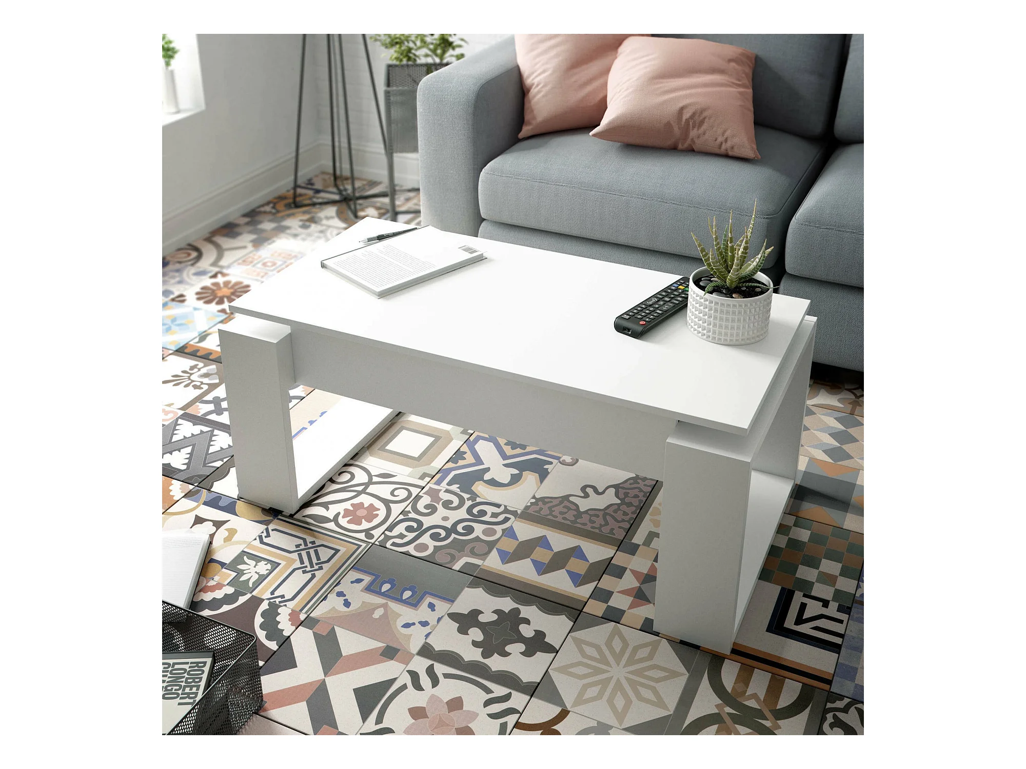 Table basse relevable blanche