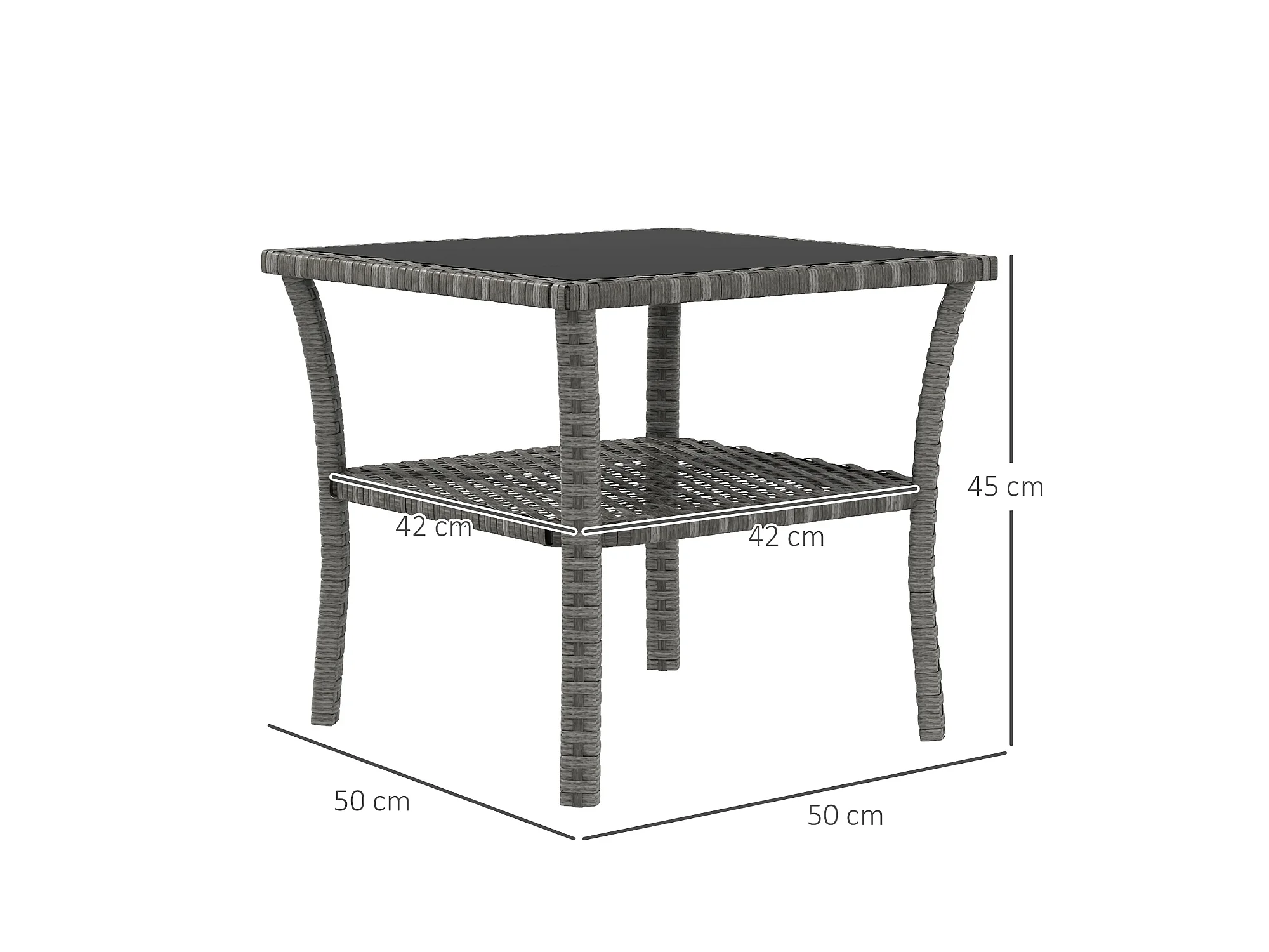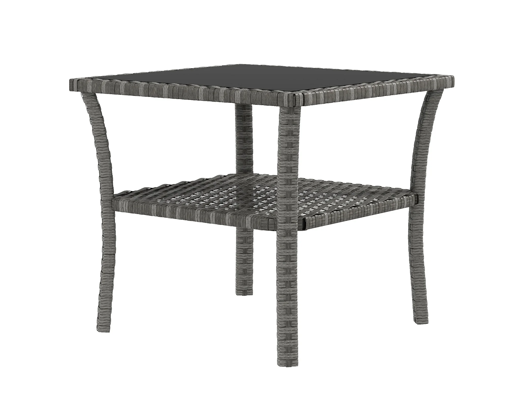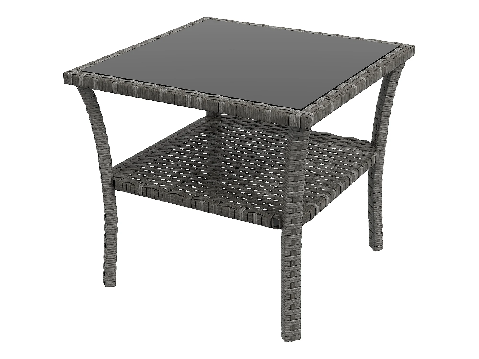 Table basse de jardin avec étagère et plateau verre trempé dim. 50 x 50 x 45 cm résine tressée gris