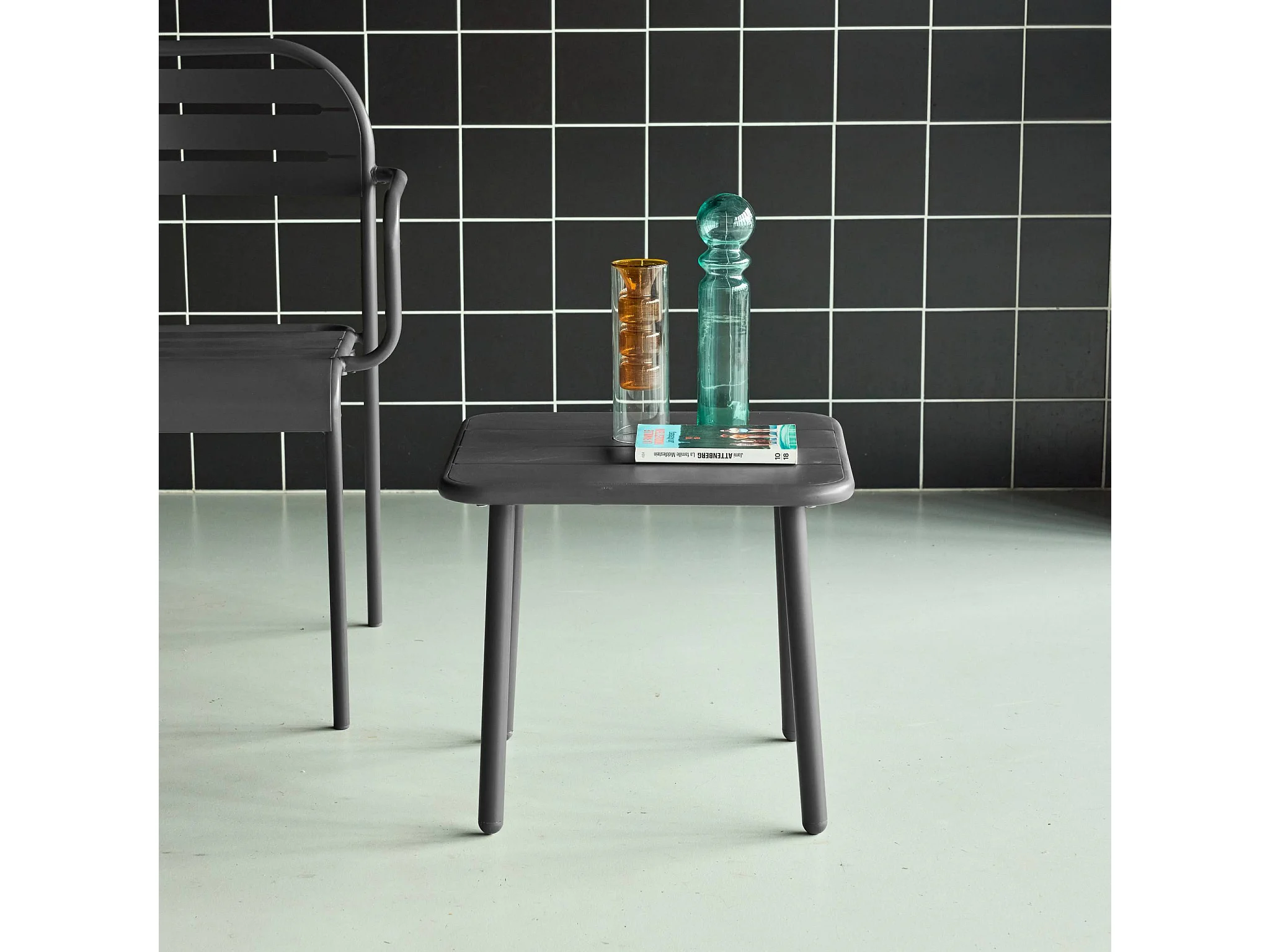 Table basse de jardin carrée acier 45cm anthracite - Amélia