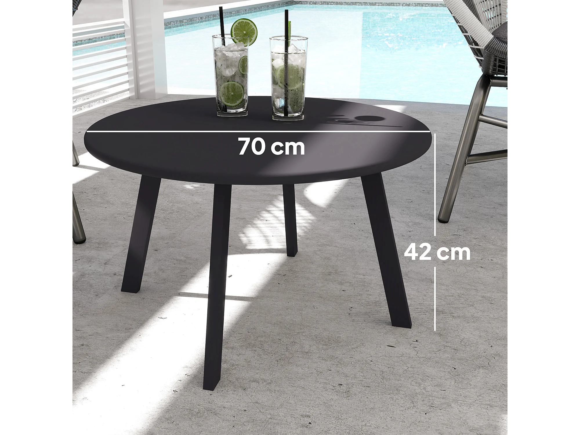 Table basse de jardin d'appoint style nordique Ø 70 x 42H cm métal époxy noir