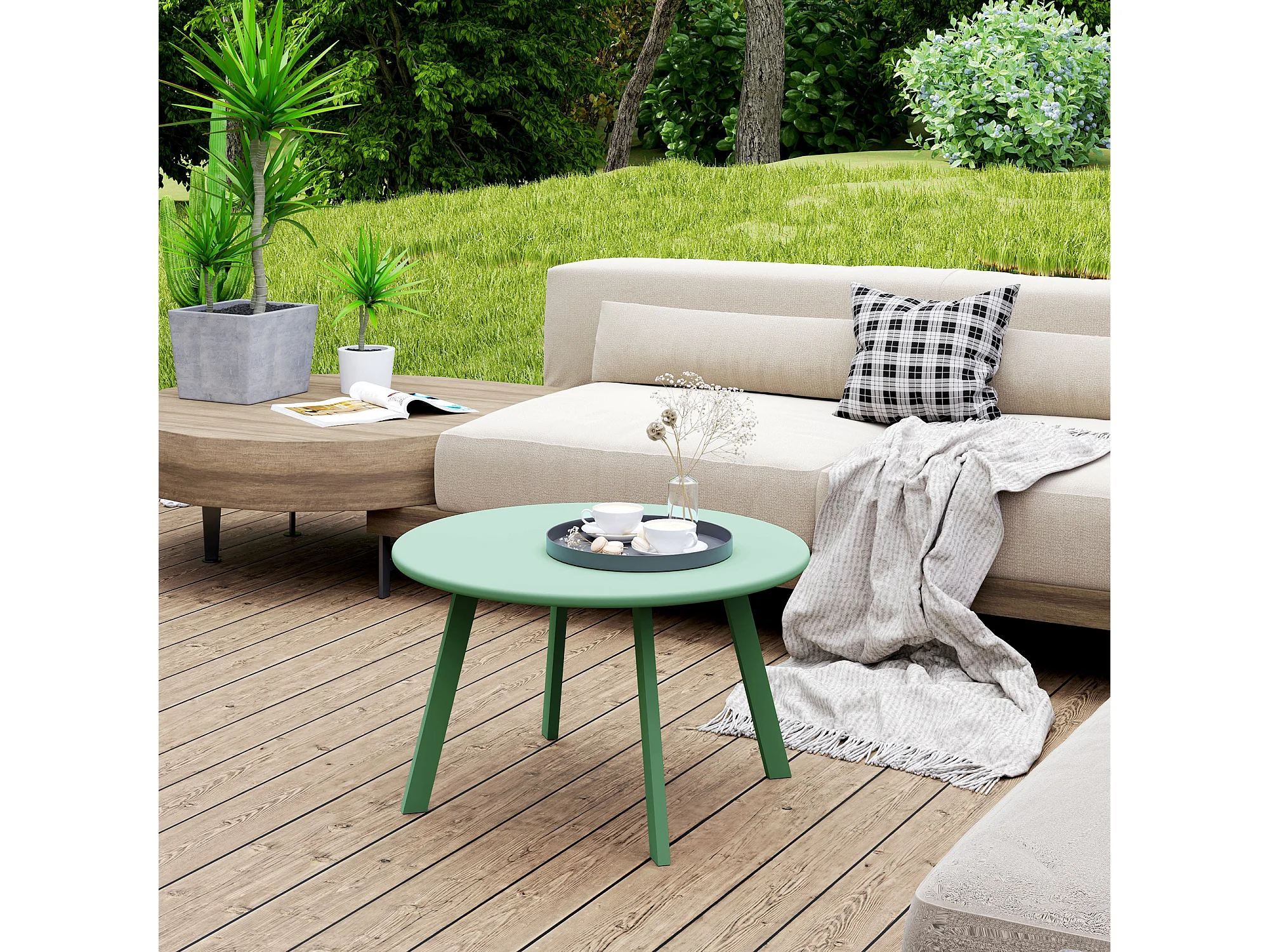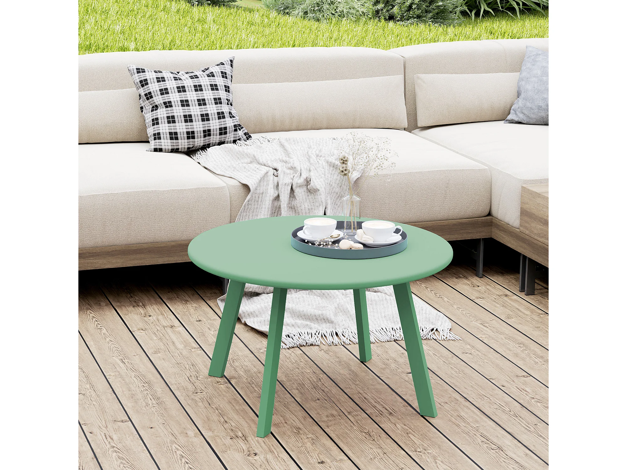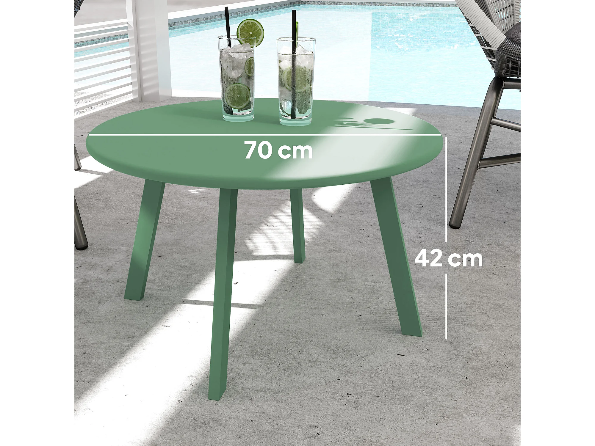 Table basse de jardin d'appoint style nordique Ø 70 x 42H cm métal époxy vert d'eau