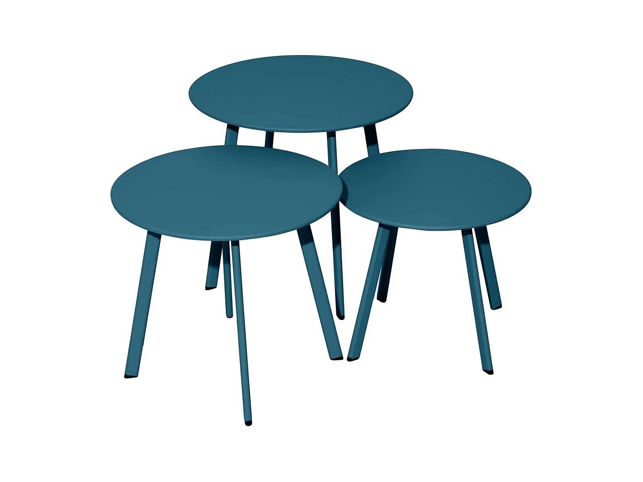 Lot de 2 tables basses gigognes de jardin métal époxy bleu