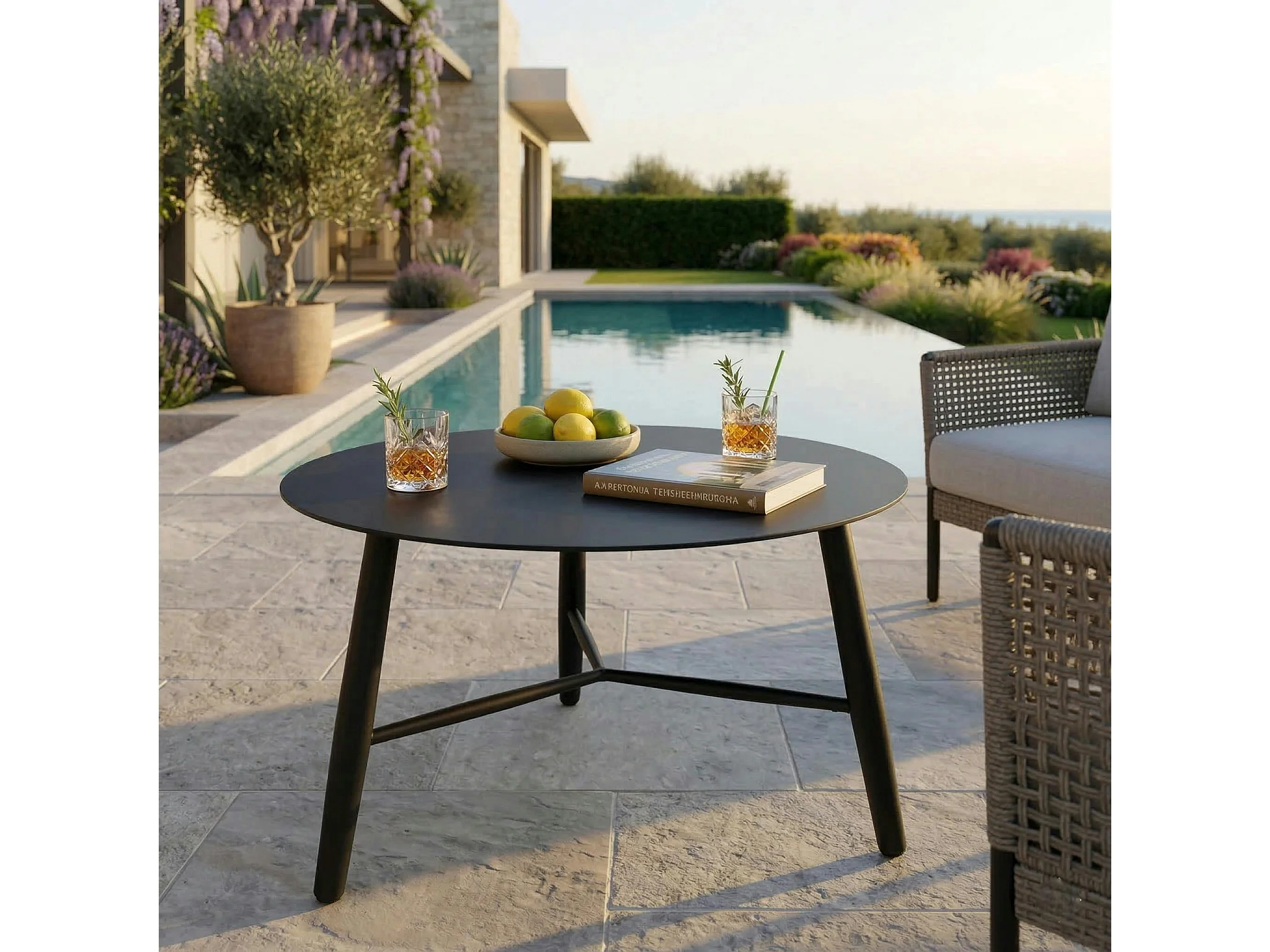 Table basse de jardin en aluminium noir Ø 75 cm STOCKHOLM