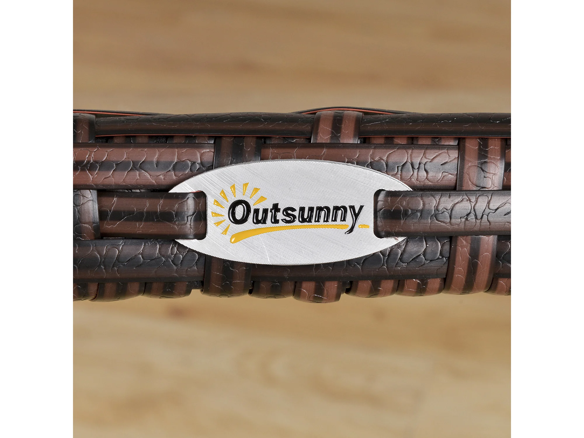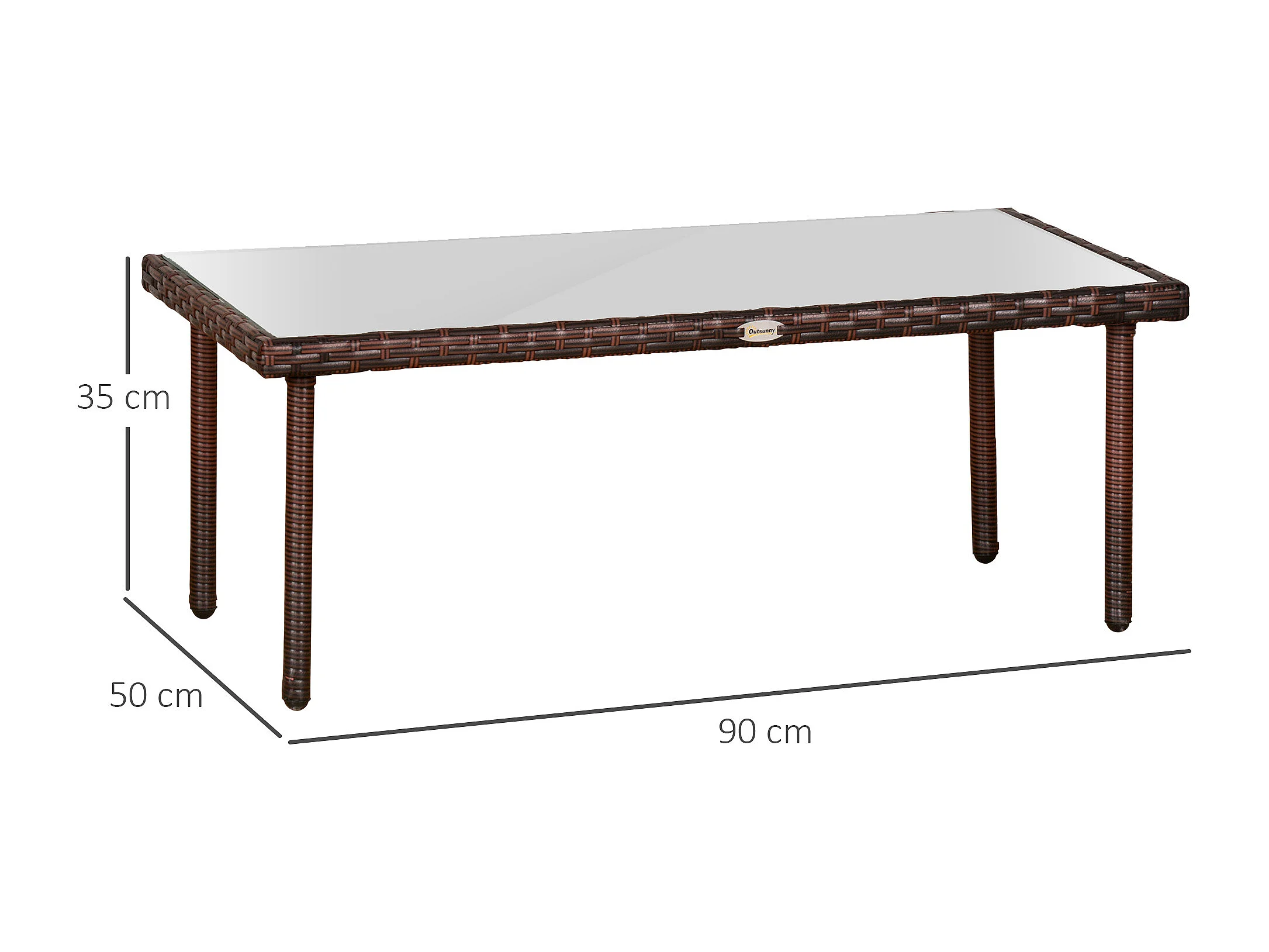 Table basse de jardin plateau verre trempé 5 mm résine tressée imitation rotin chocolat