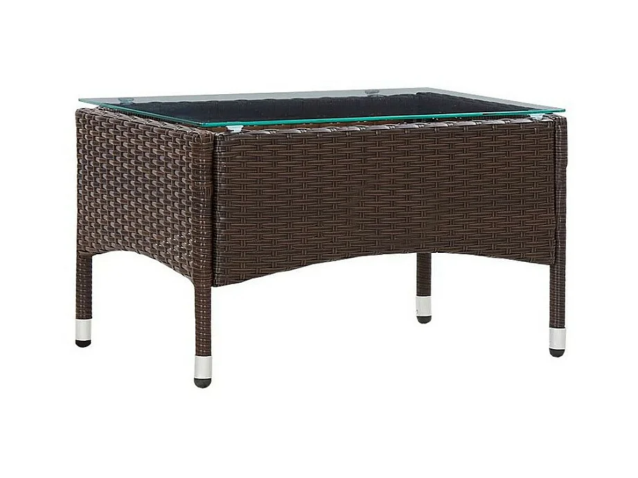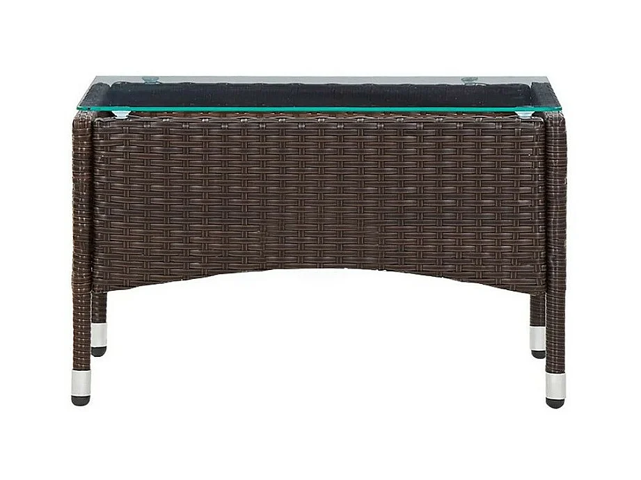 Table d'appoint de jardin avec dessus en verre beige rotin