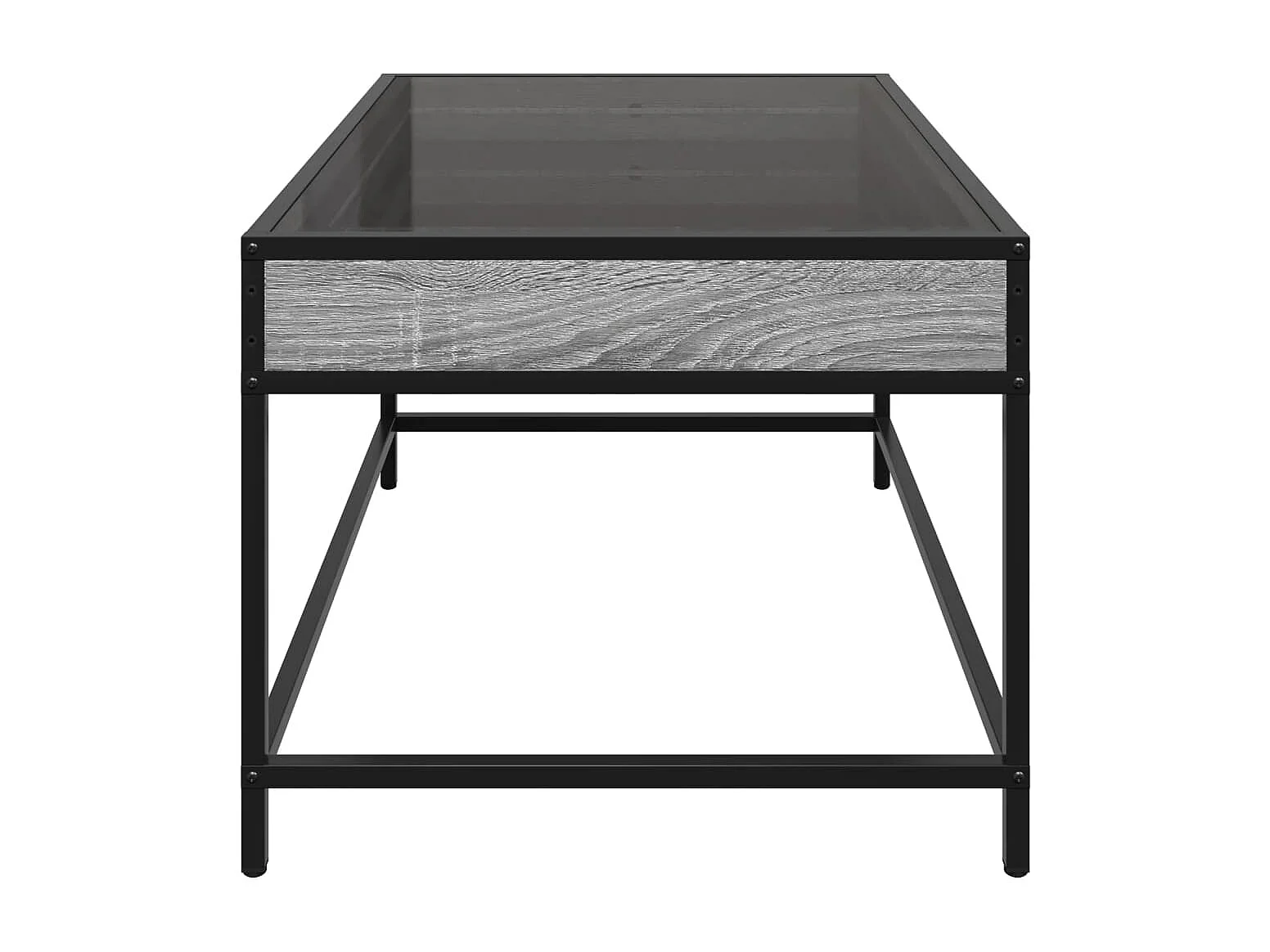 Table basse moderne Dinter L105cm Bois massif Anthracite et Verre Transparent