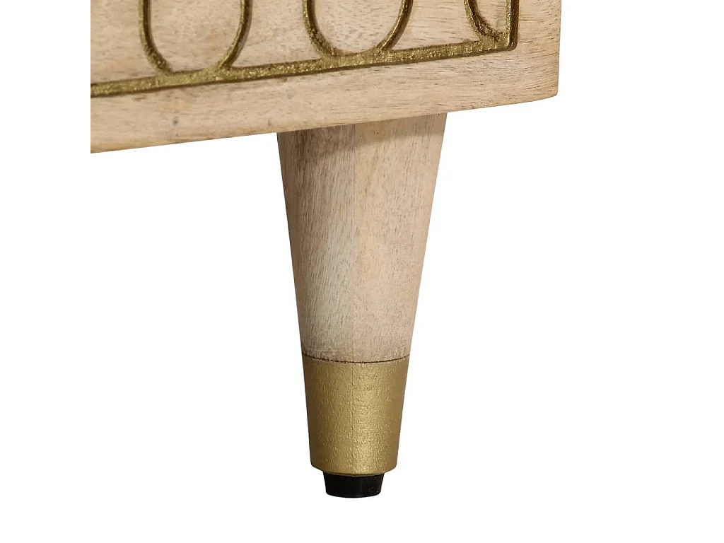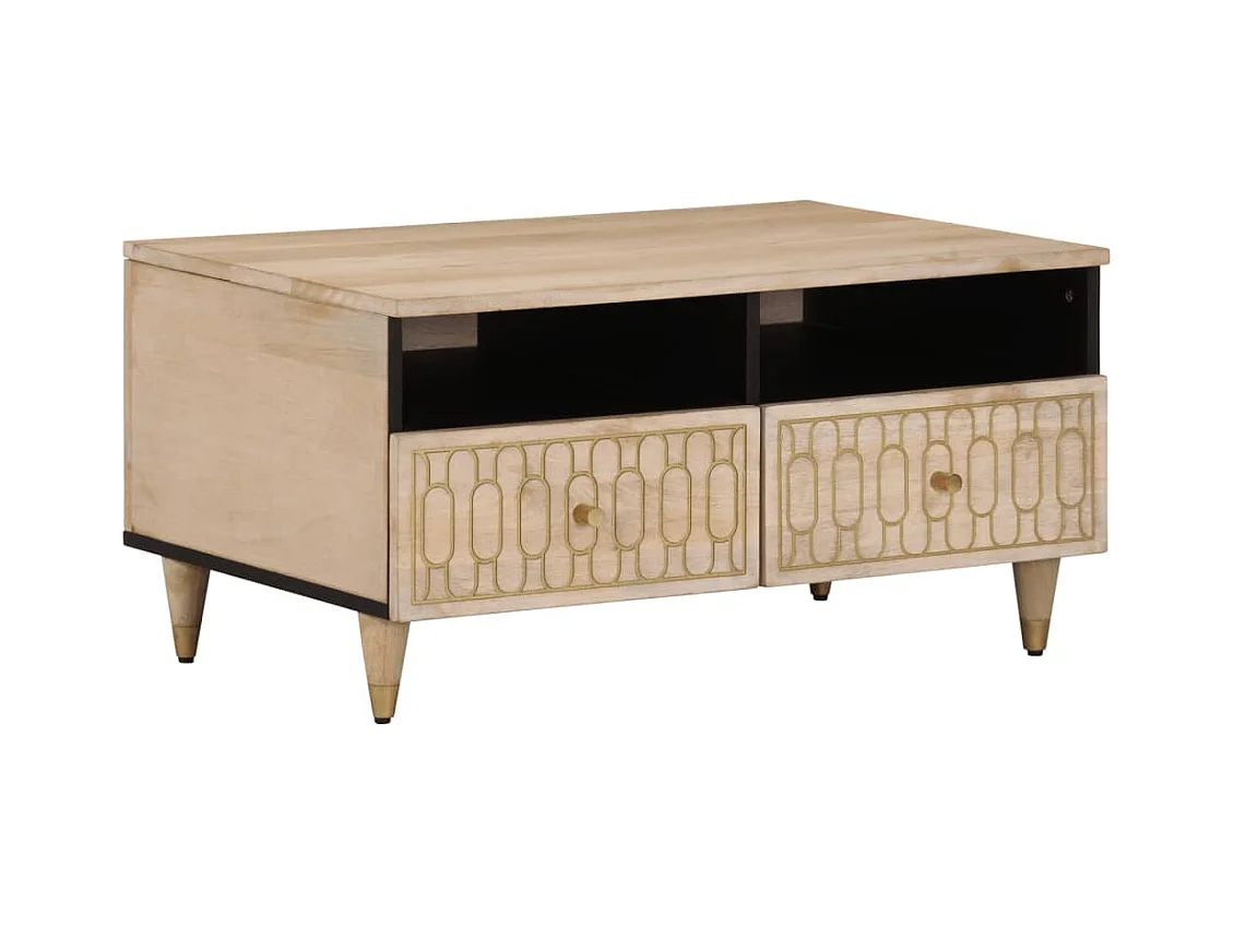 Table basse en bois, avec un grand plateau et deux tiroirs, décorée à la main de lignes dorées, 110 L x 59 l x 42 H cm, marron.