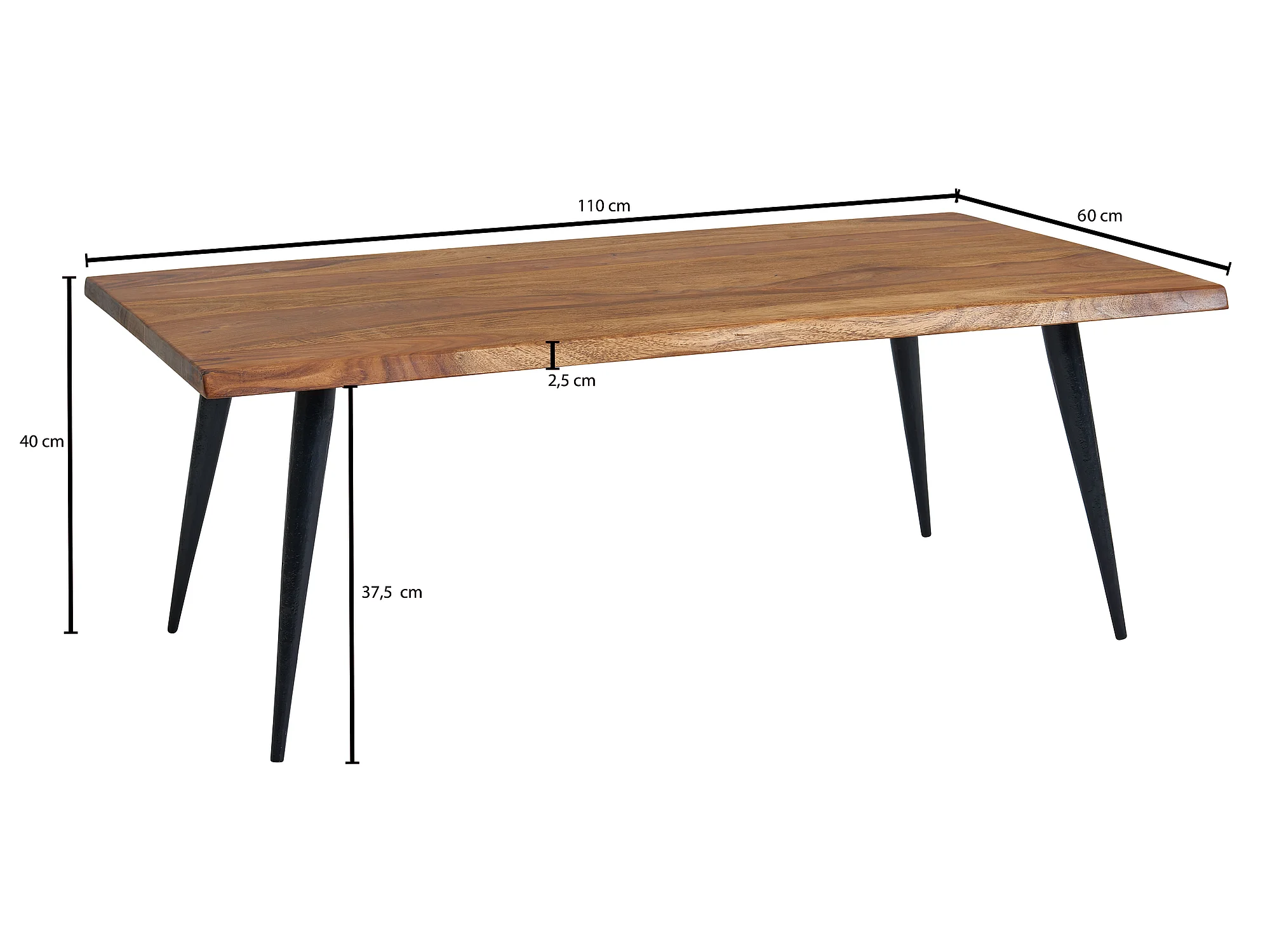 Table Basse de Salon Bois Massif et Métal Table Canapé Moderne Marron