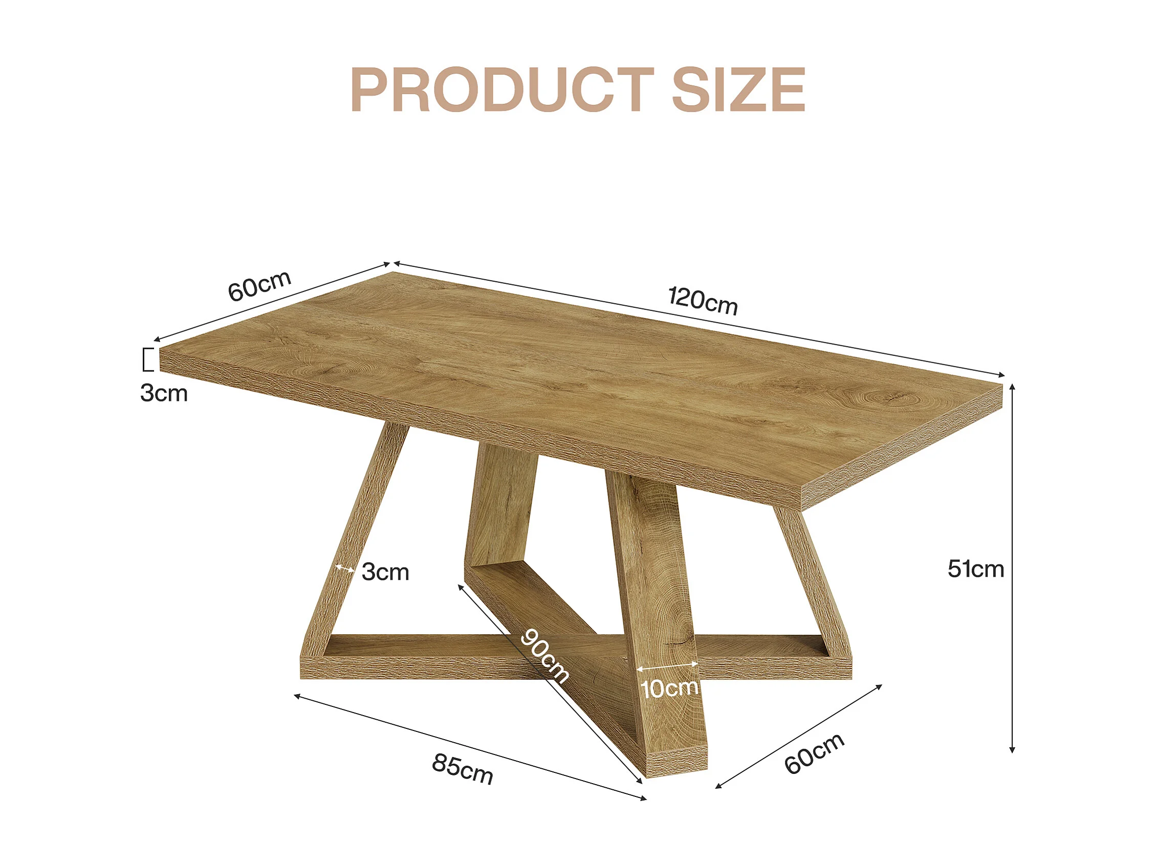 Table basse de salon rectangulaire de style campagnard, 120 cm.