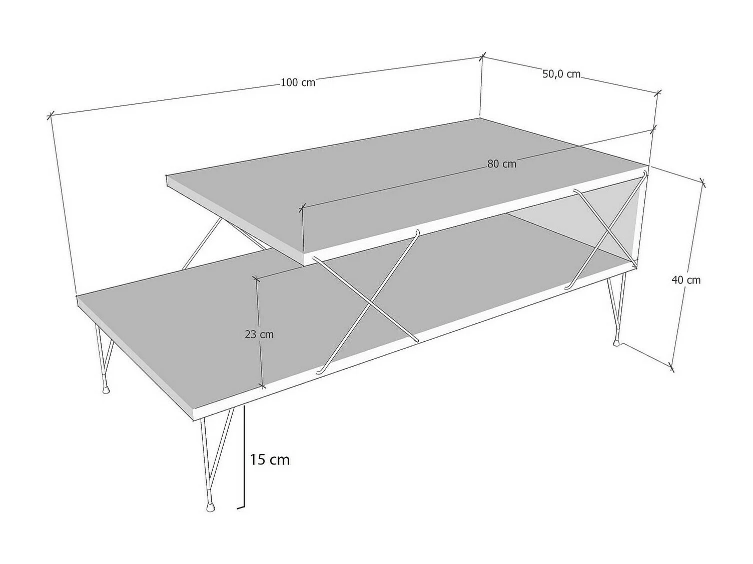 Table basse avec étagères marron 100 x 50 x 40 cm DEC039548