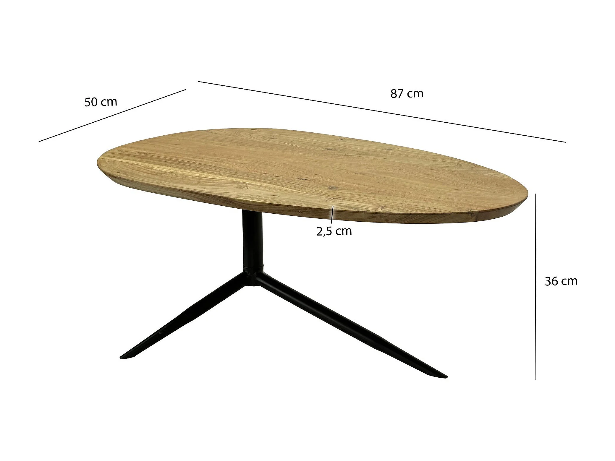 Table basse design Acacia Bois massif 87cm ovale Table de salon Piètement métal
