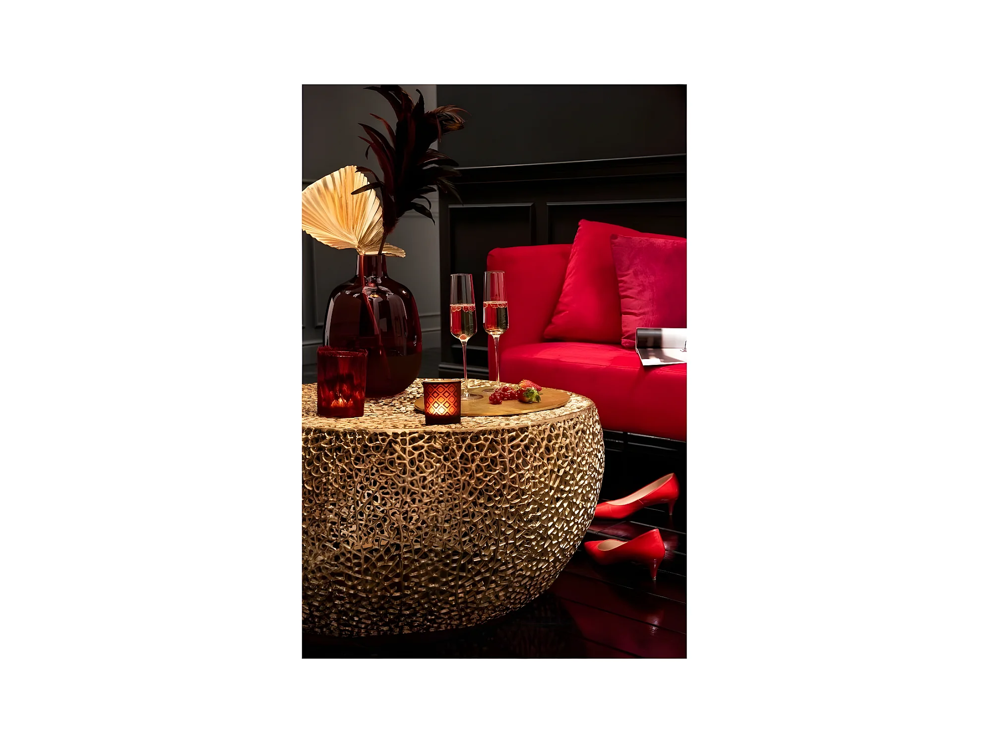 Table Basse Design "Corail" 114cm Or