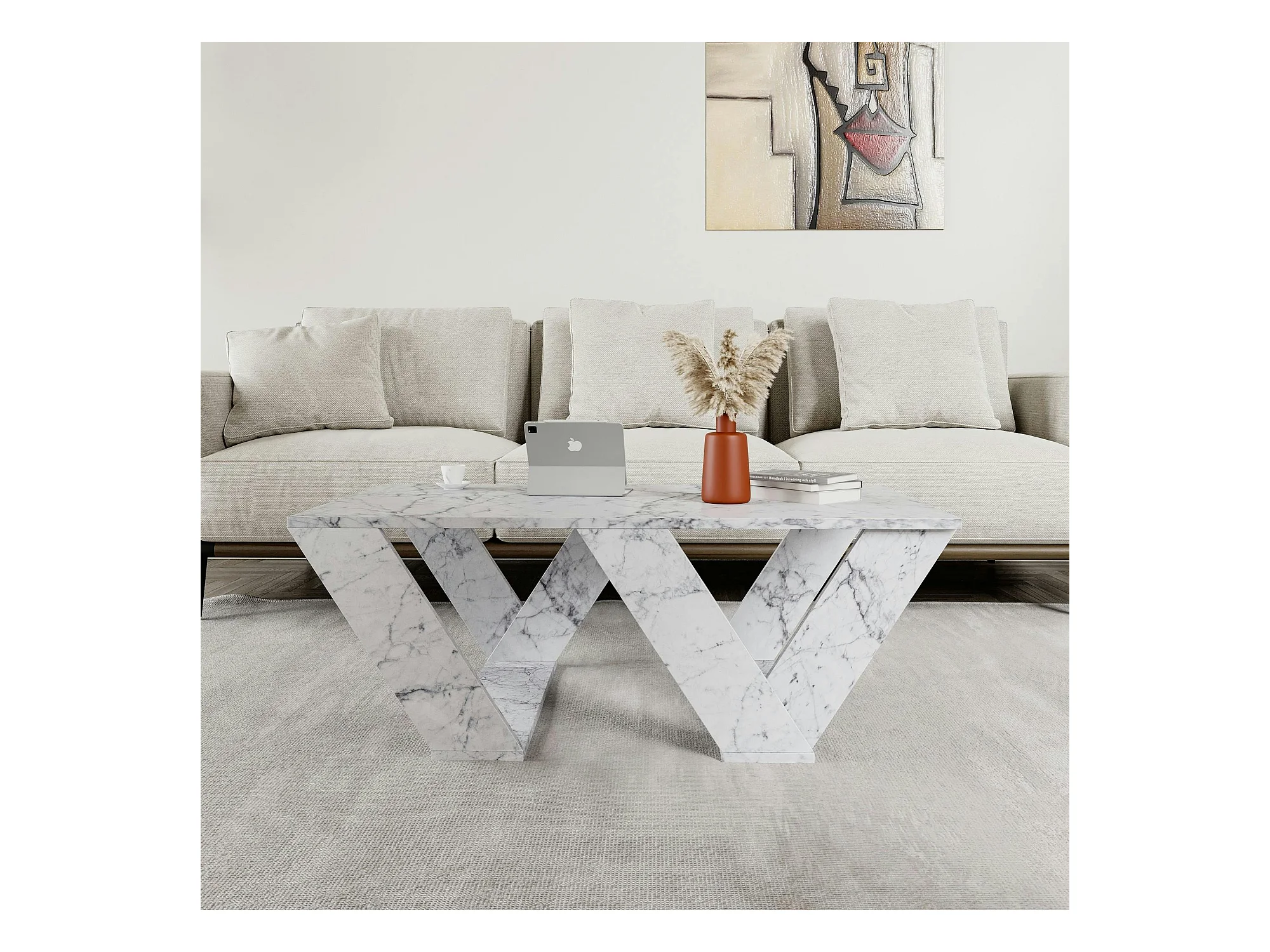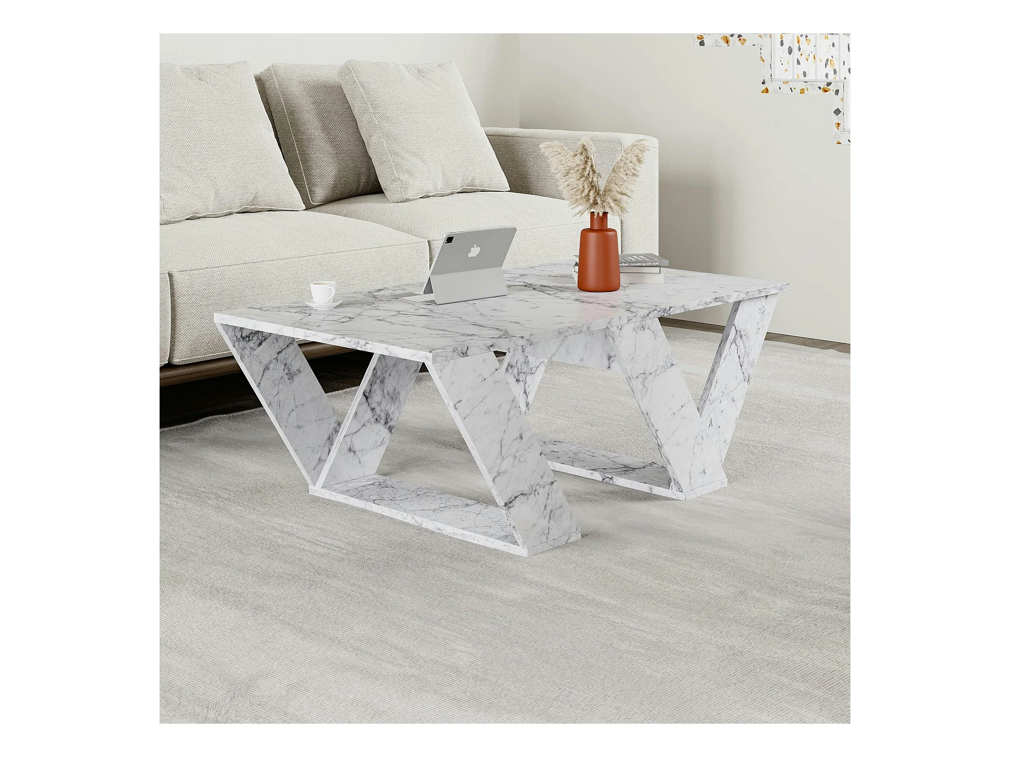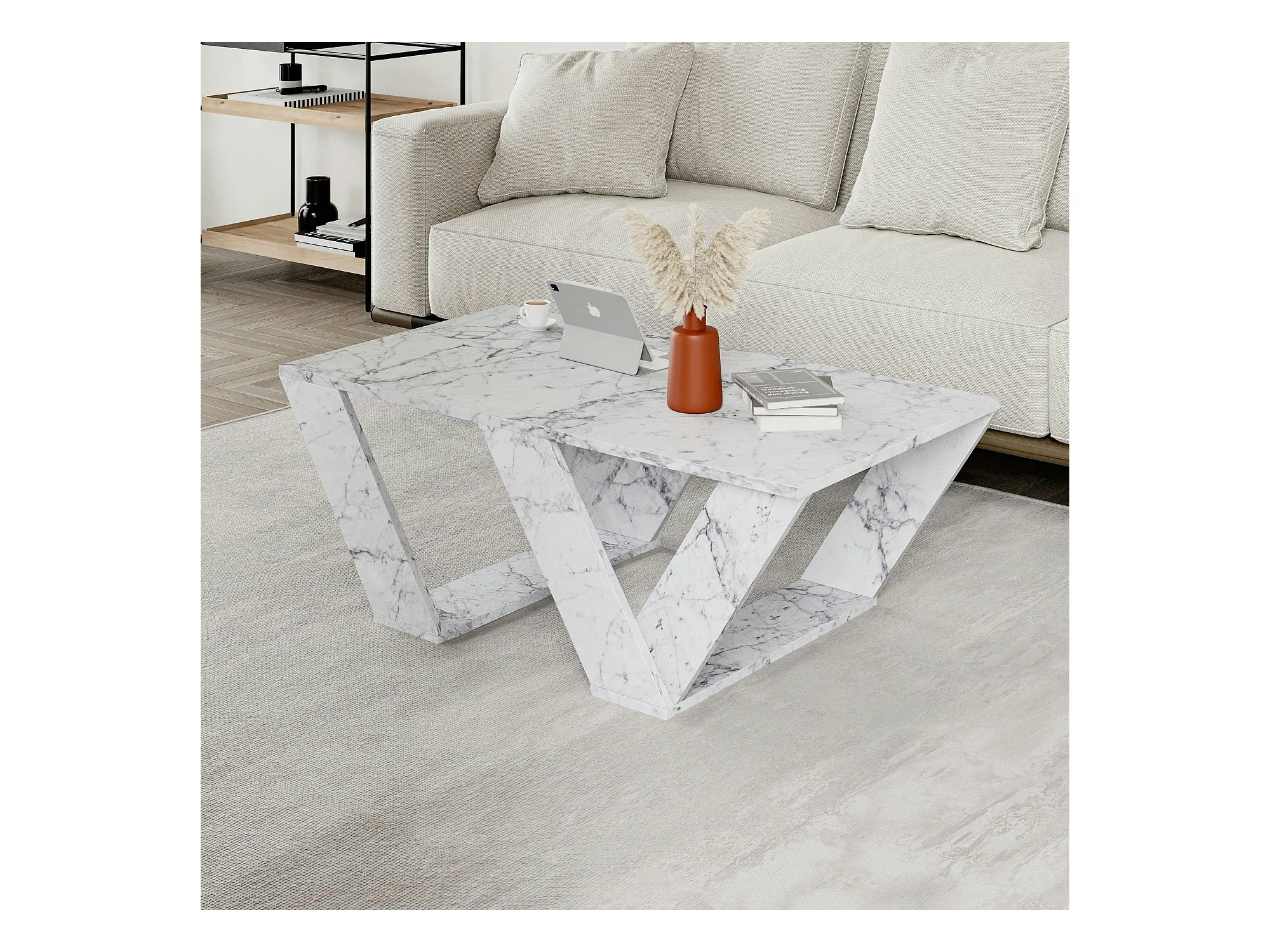 Table basse moderne effet marbre blanc - 2 niveaux MARFA