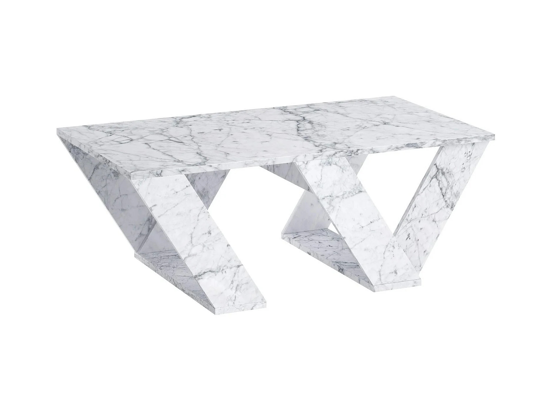 Table basse moderne blanche effet laque - pieds en V MARFA