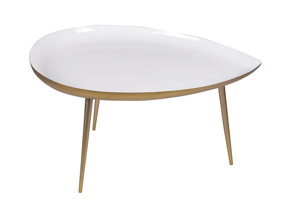 Table basse design en acier laqué blanc et doré L80 cm DROP