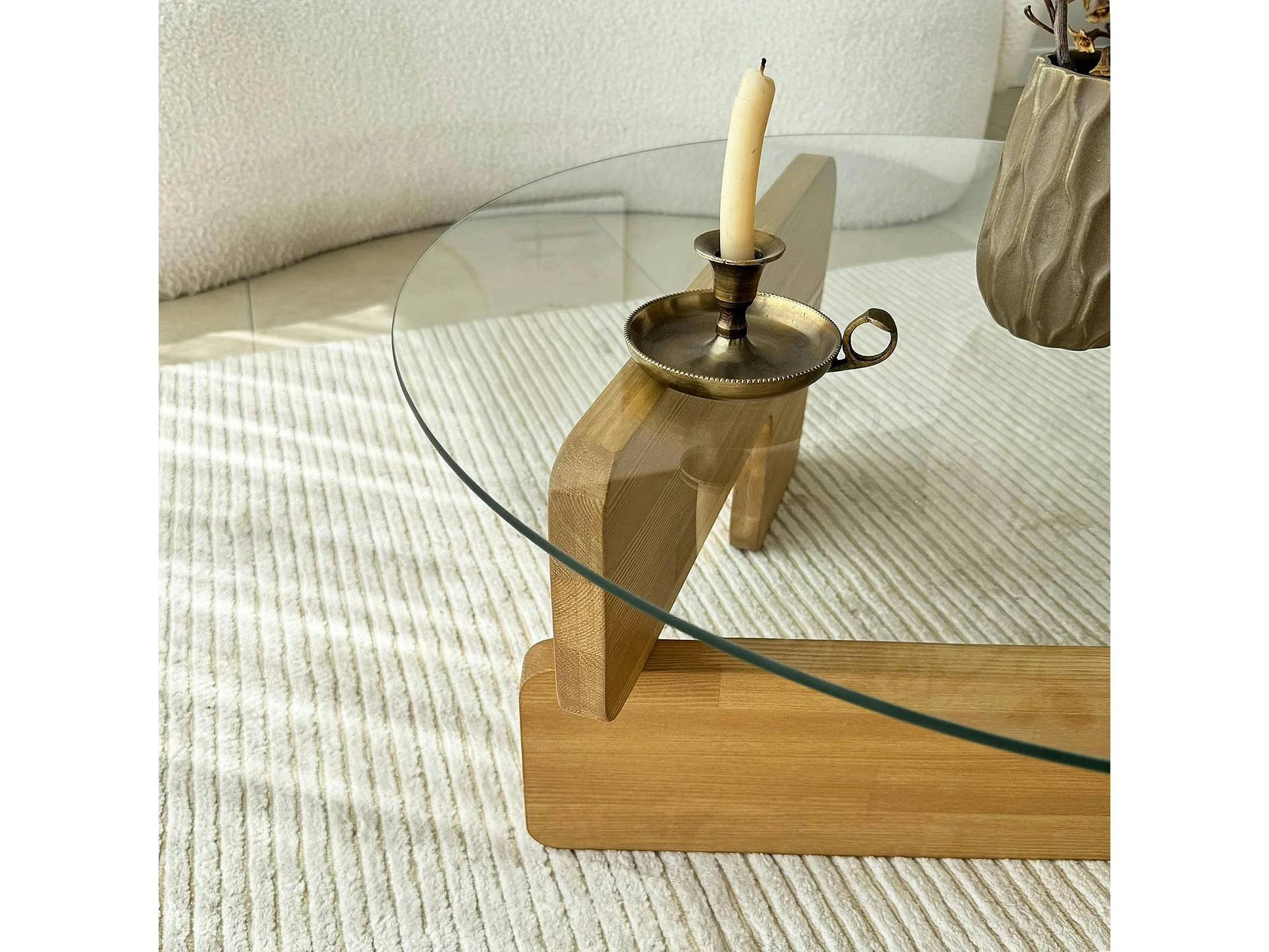 Table basse design en verre - pied bois clair ANZIO