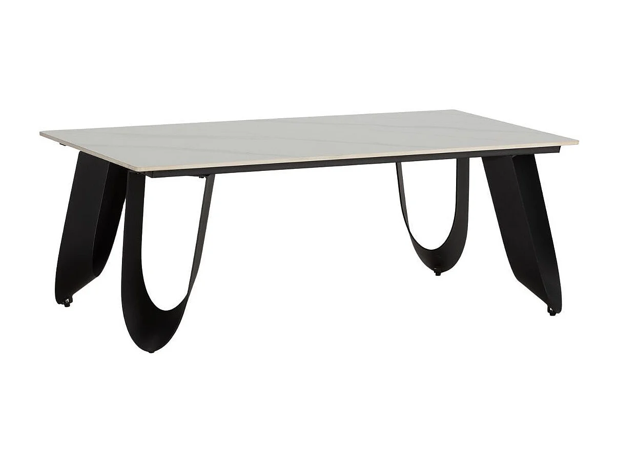 Table basse design rectangulaire avec plateau céramique imitation marbre blanc pied métal noir architectural - LEILA