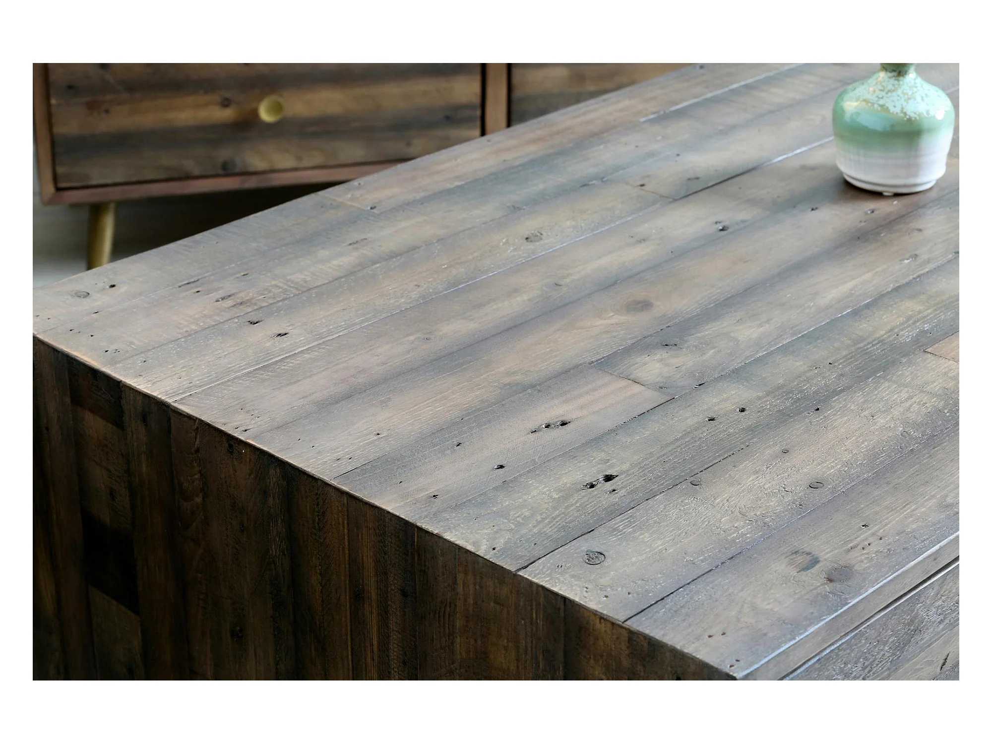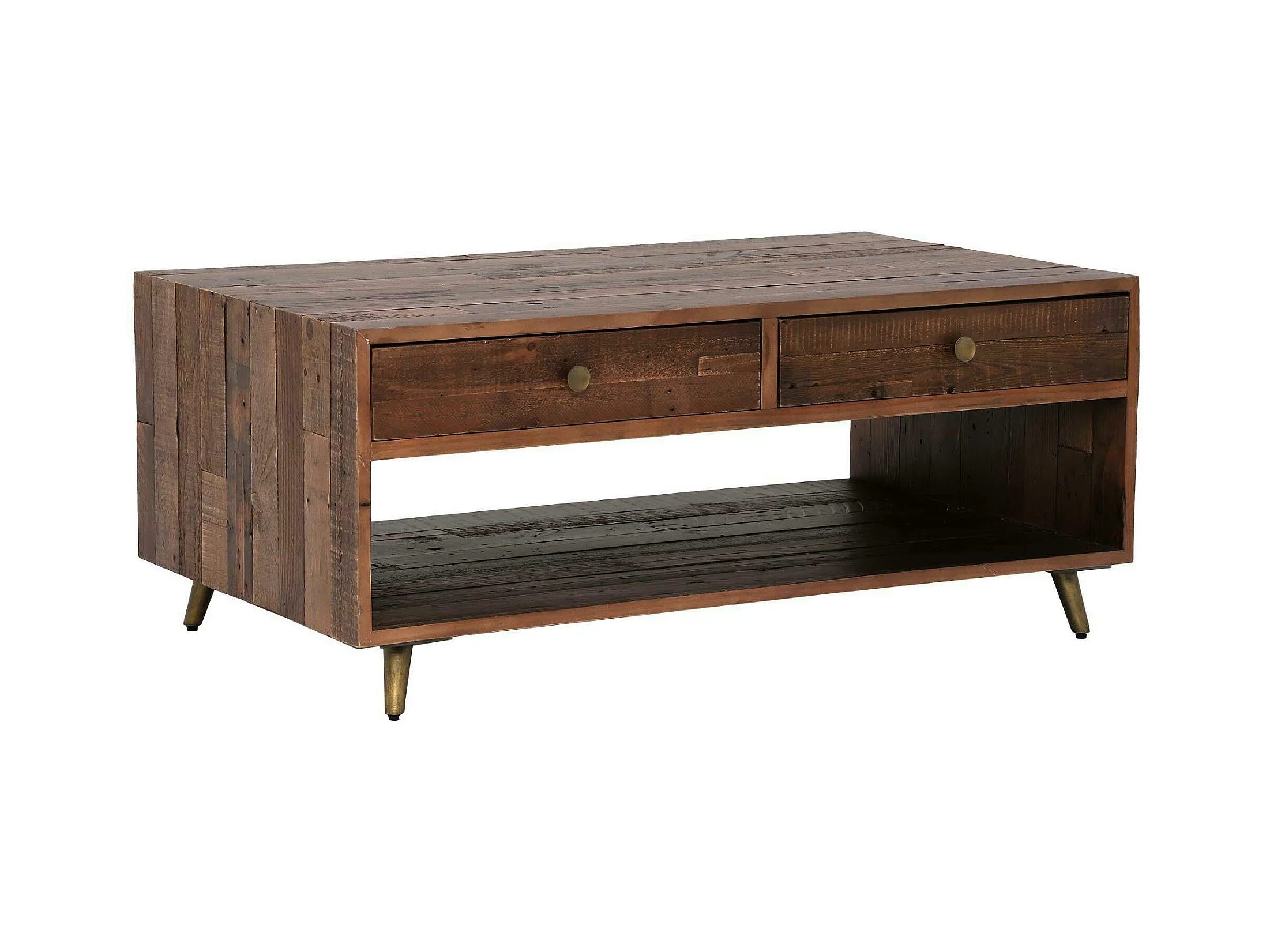 Table basse double plateau bois recyclé piètement effet laiton vieilli ADÉLAÏDE