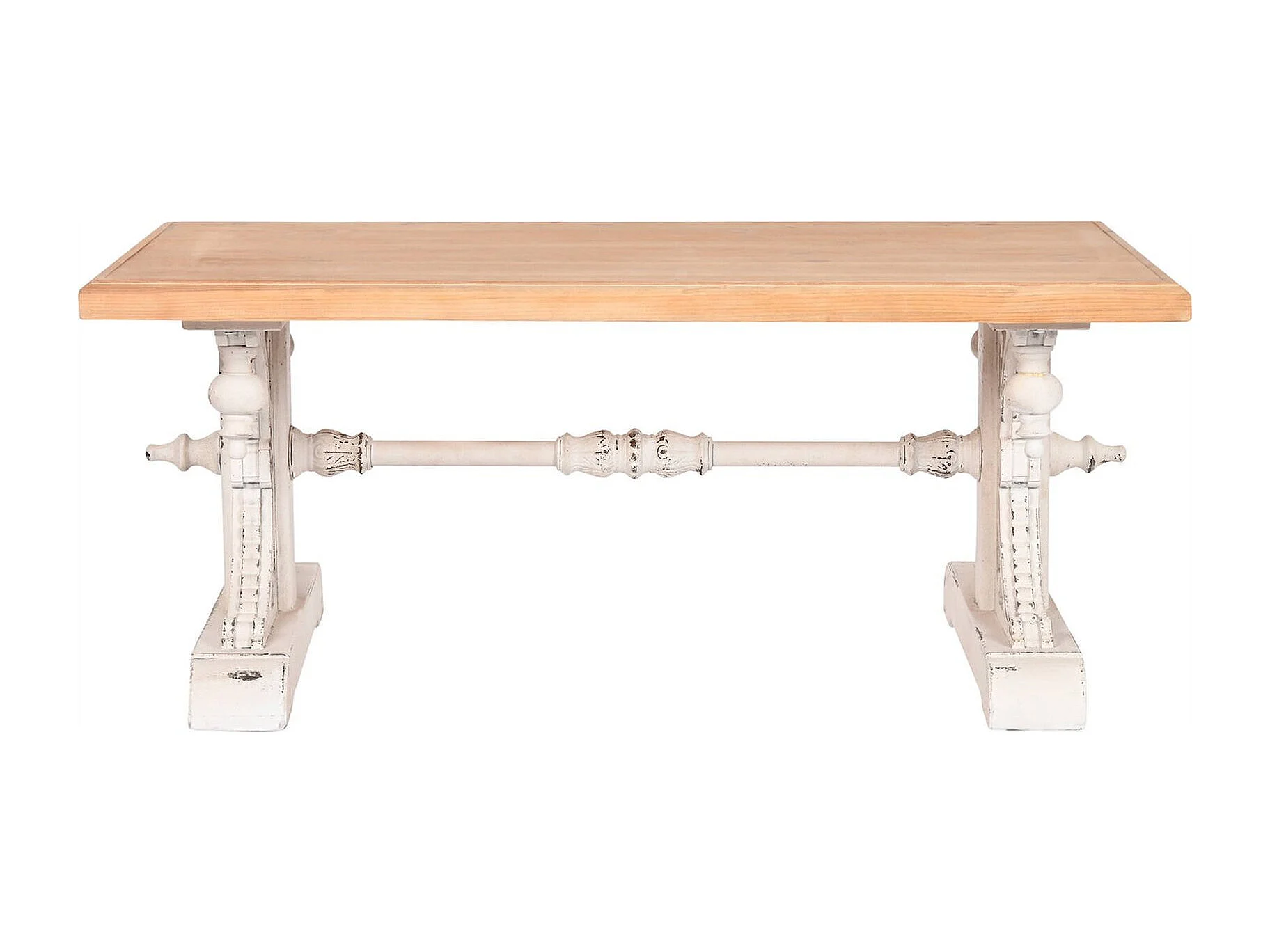 Table basse élégance bois blanc finition patinée