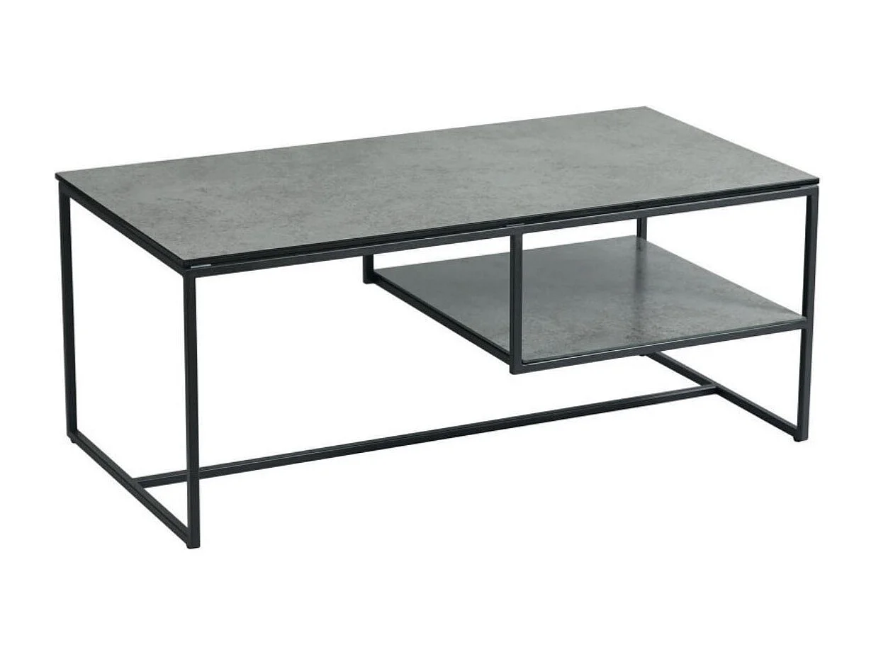 Table basse en acier laqué anthracite avec plateaux en verre finition aspect céramique - STRATE