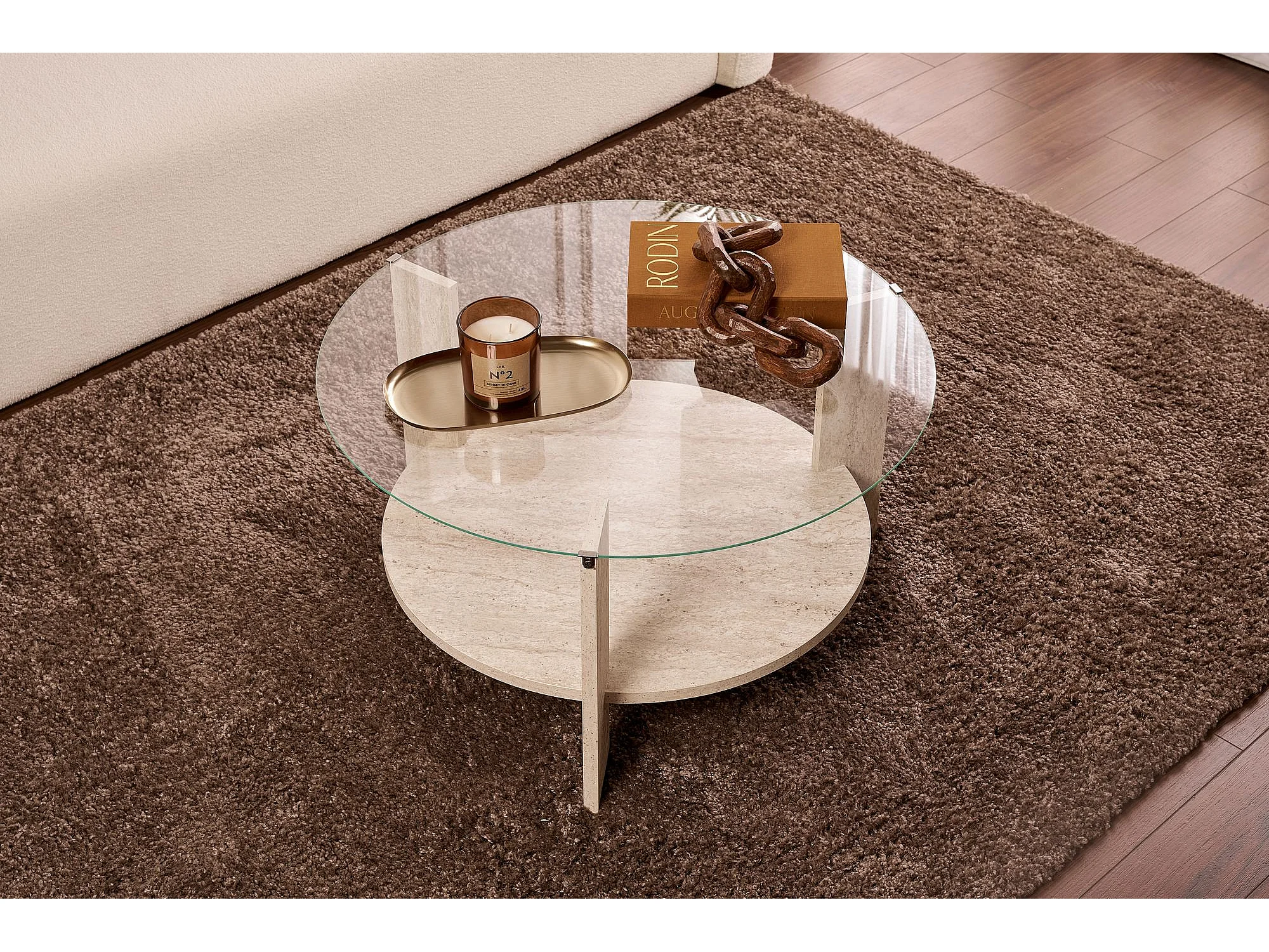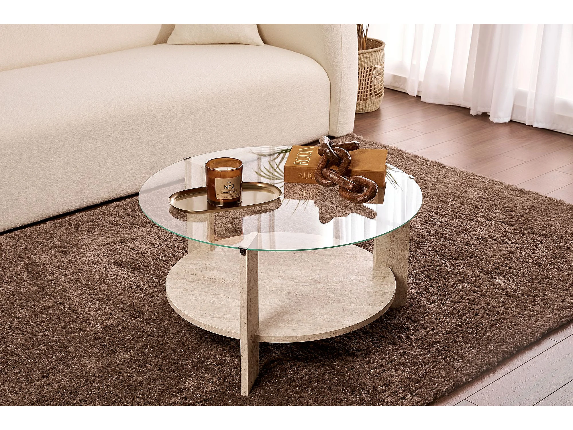 Table basse en bois "Aeris" - 75 x 75 x 35 cm - TravertinTransparent