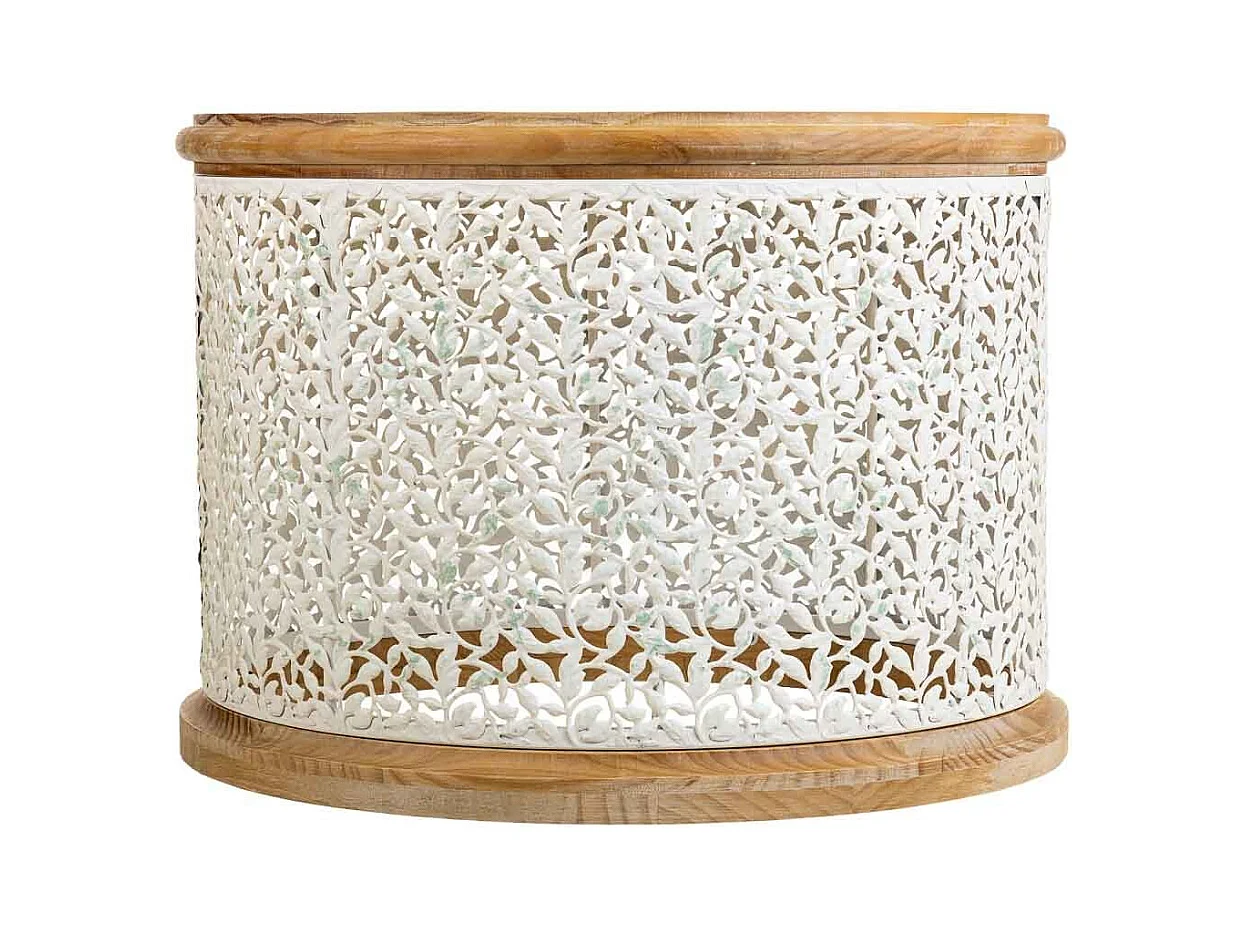 Table basse en bois et métal blanc 63.5x63.5x46.5h
